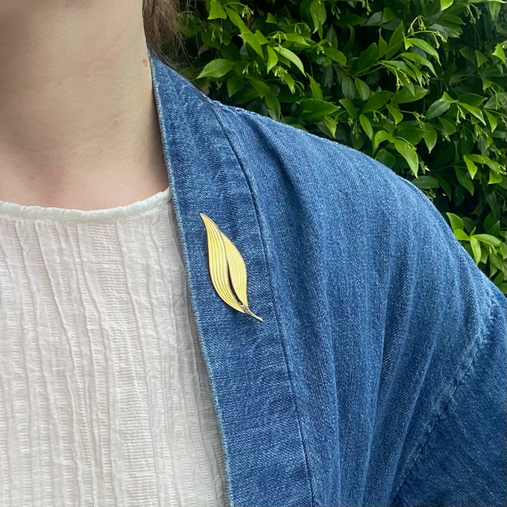 Delicate Yellow Guilloché Enamel Leaf Brooch by Holmsen