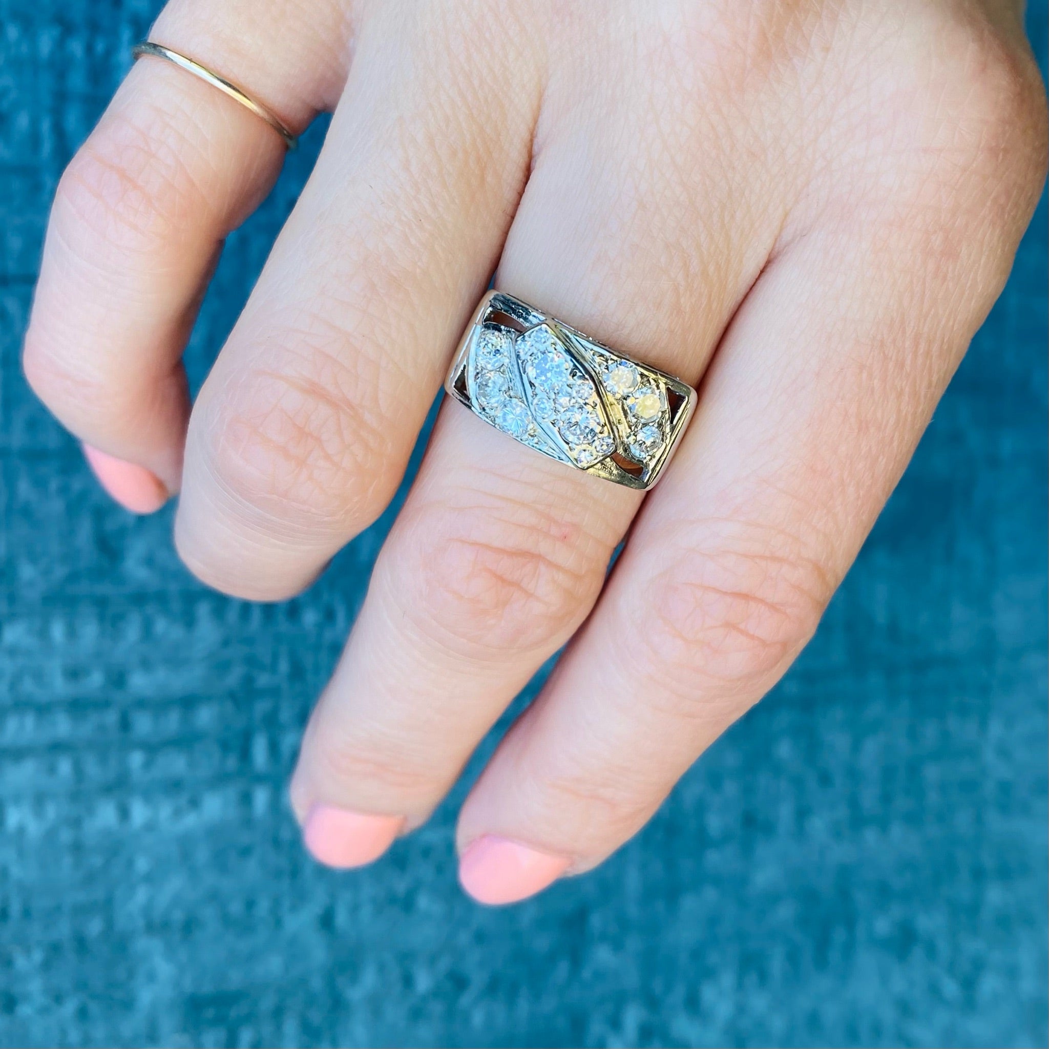 Unexpected Retro Diamond & White Gold Wedding Band