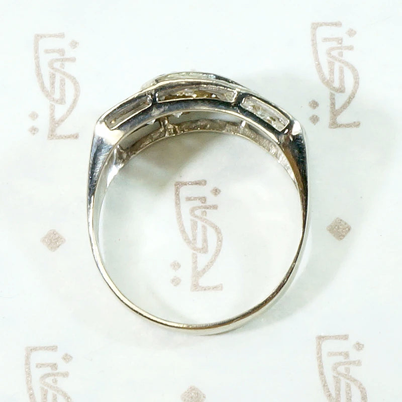 Details.....The ring is currently a size 7.75. We will size it up or down two sizes, free of charge. Please contact us if you need this ring sized more than two sizes, it may be possible for a small fee. The top of the ring measures 19mm by 9.4mm and the band tapers from 9.3mm to 3.1mm wide. In Very Good Vintage Condition. You should always expect some wear on vintage and antique jewels, we consider it part of their charm.