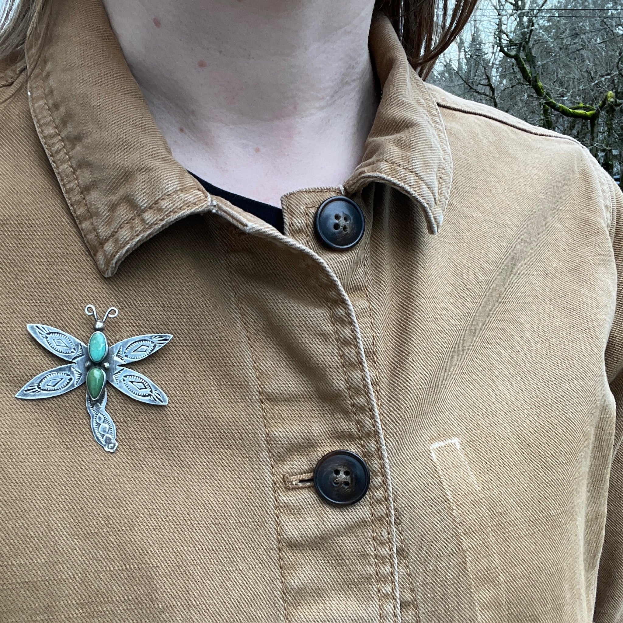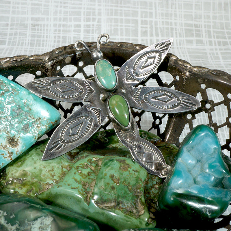Dragonfly Brooch with Turquoise & Rocker Designs