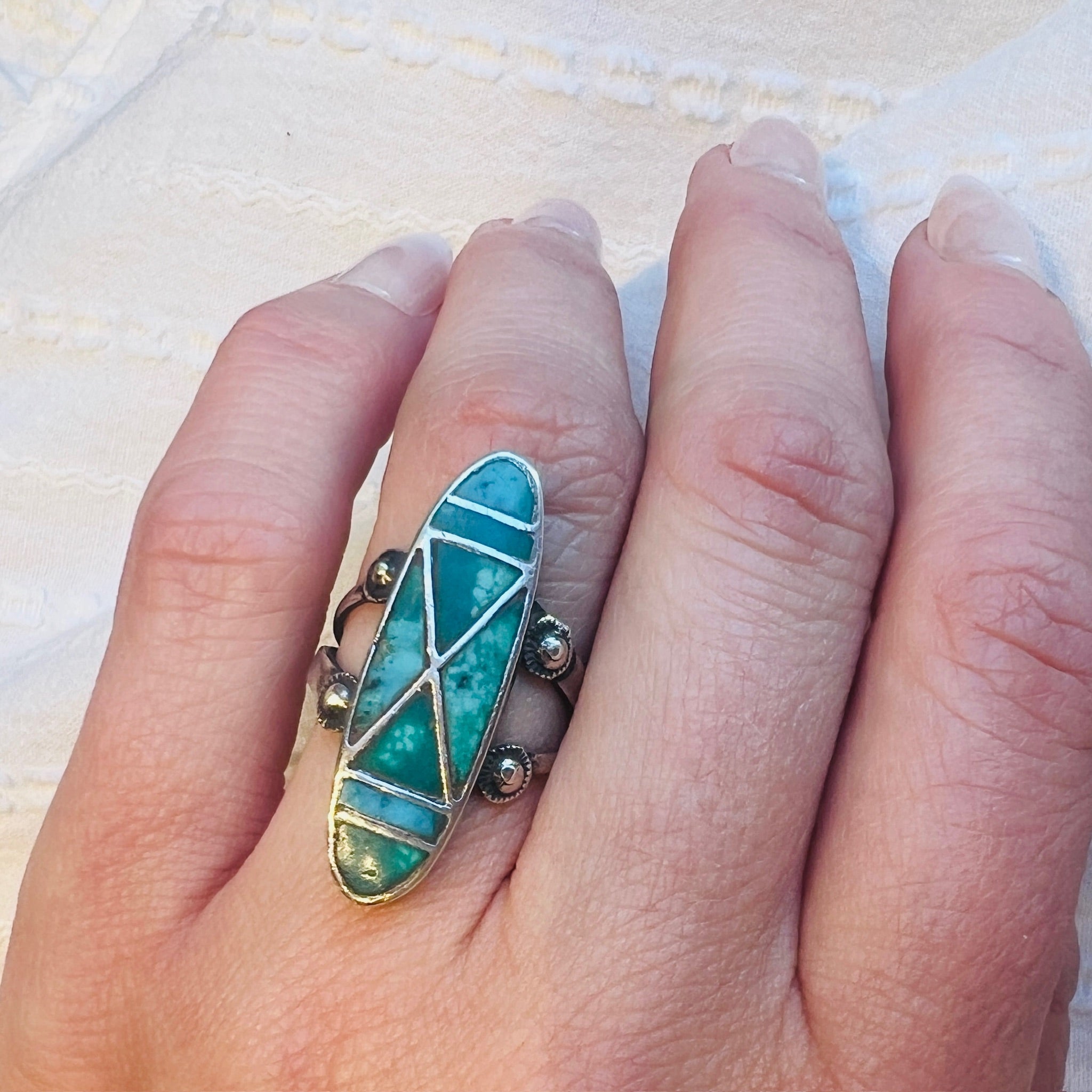 Dramatic Turquoise Inlay in Sterling Silver Ring