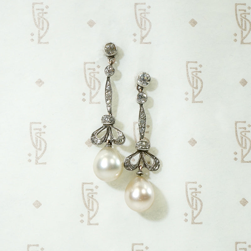 Details.....The earrings are 1.35" long and the pearls measure 7.2mm across the widest point. In Very Good Condition. You should always expect some wear on your antique and vintage jewels, we consider it part of the charm.