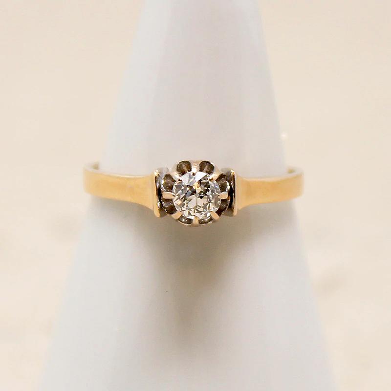 Edwardian Old Mine Diamond in 18k Engagement Ring