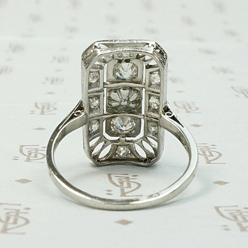 Details.....Currently a size 6.5. This ring may be sized up or down two sizes free of charge. Please contact us if you need this ring sized more than two sizes, it may be possible and will have a small fee. The top measures 11.9mm by 20mm and the band is 1.7mm wide. In Very Good Antique condition. You should always expect some wear on vintage and antique jewels, we consider it part of their charm.