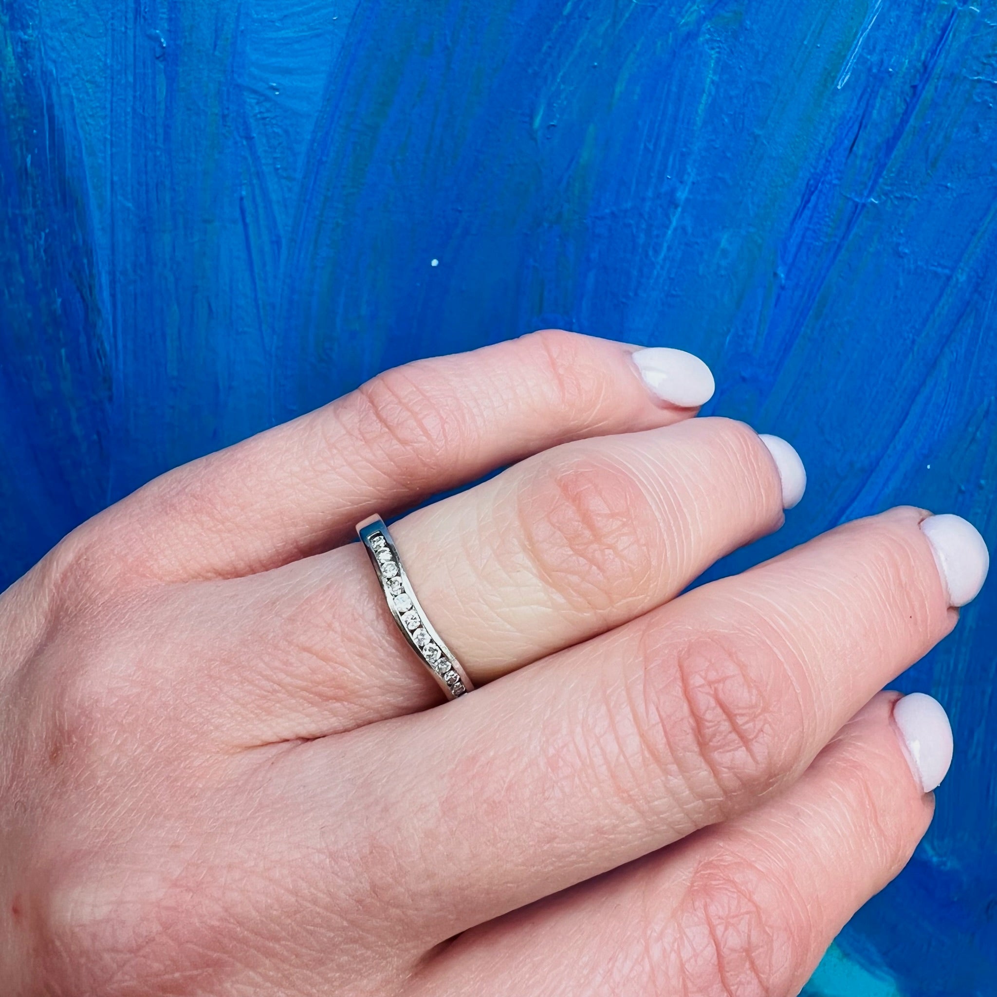 Elegant Estate Curved Diamond Band in White Gold