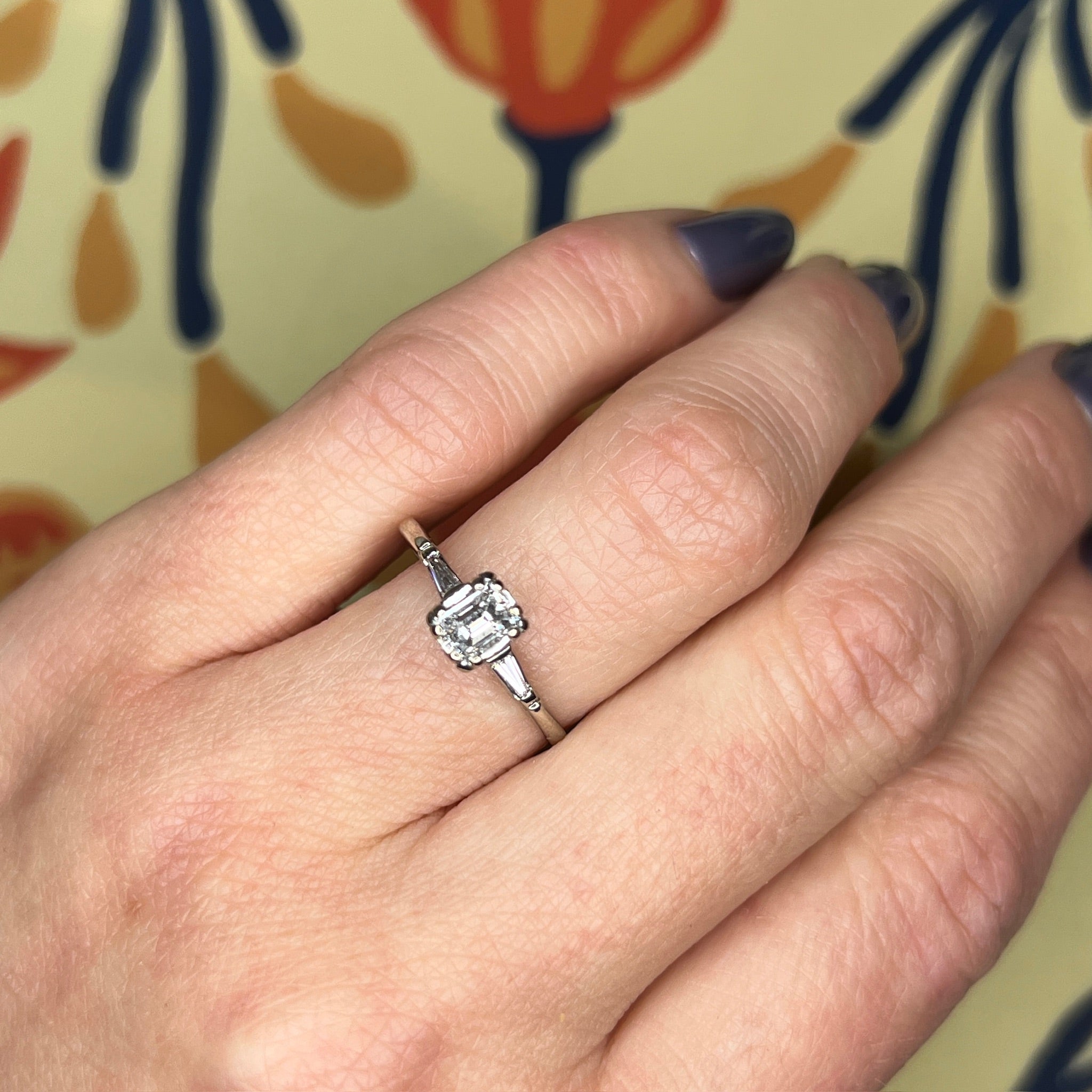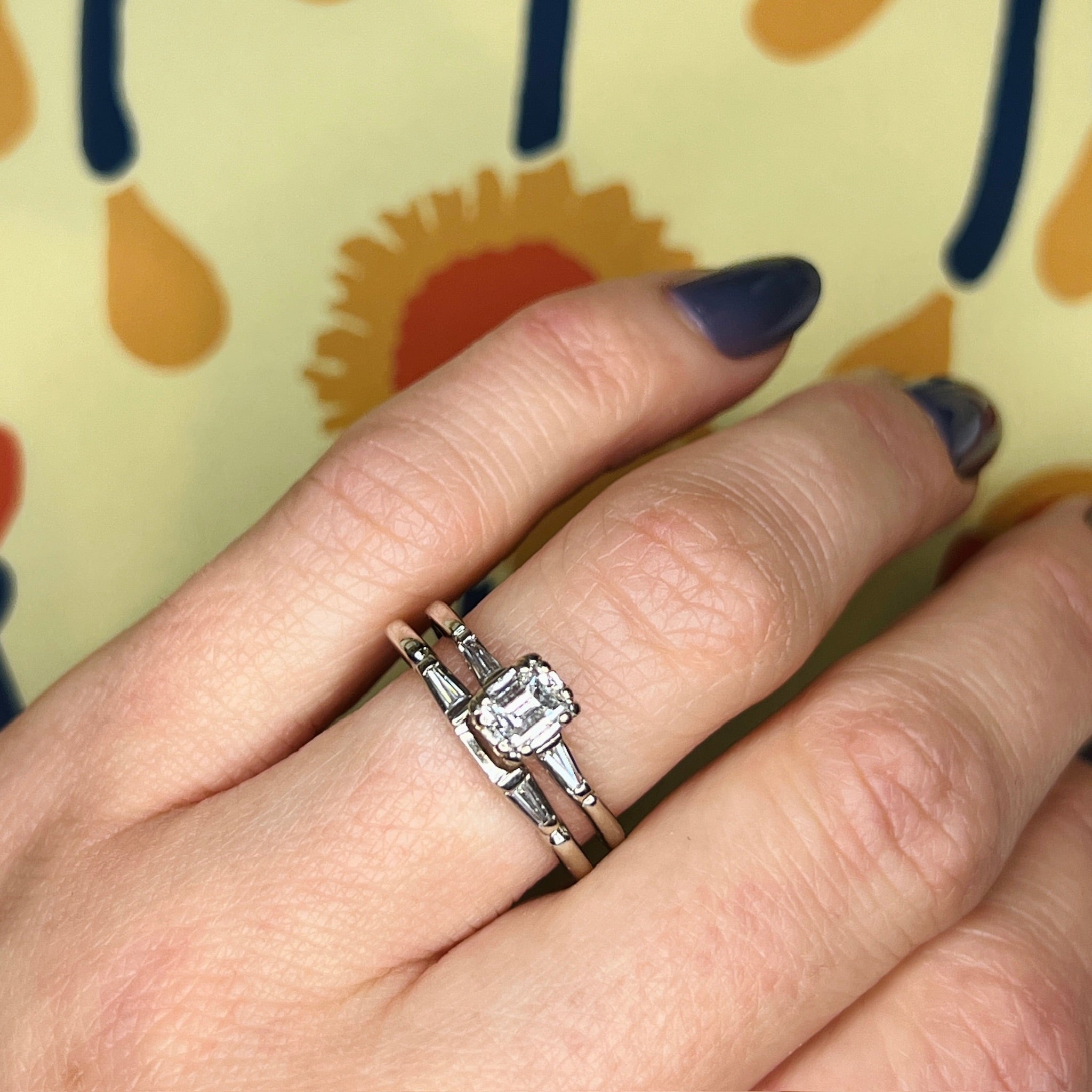 Elegant Mid-Century Emerald Step Cut Diamond Wedding Set