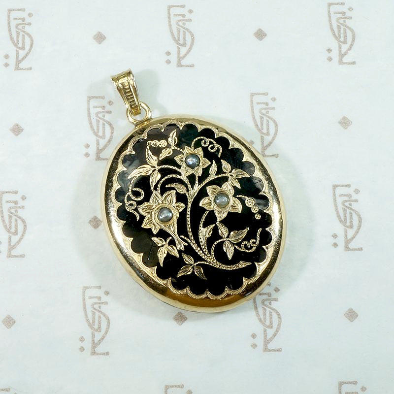 Enameled & Engraved Victorian Pearl-Set Gold Locket