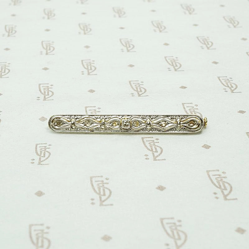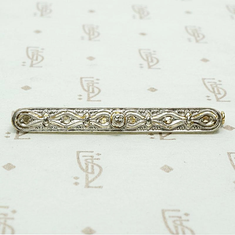 Enchanting Edwardian Bar Pin with Filigree & Diamonds