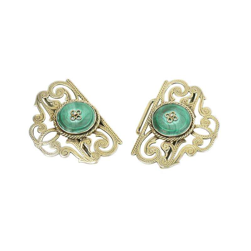 English Hallmarked Edwadian Silver Gilt Buckle set with Malachite