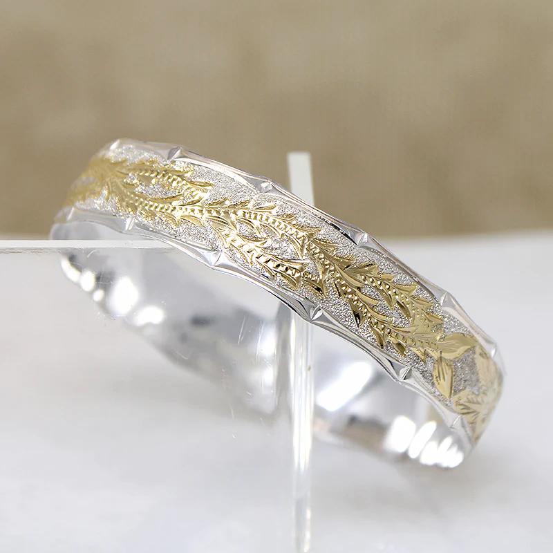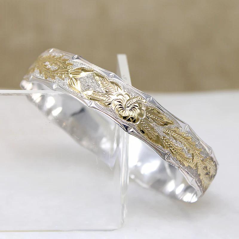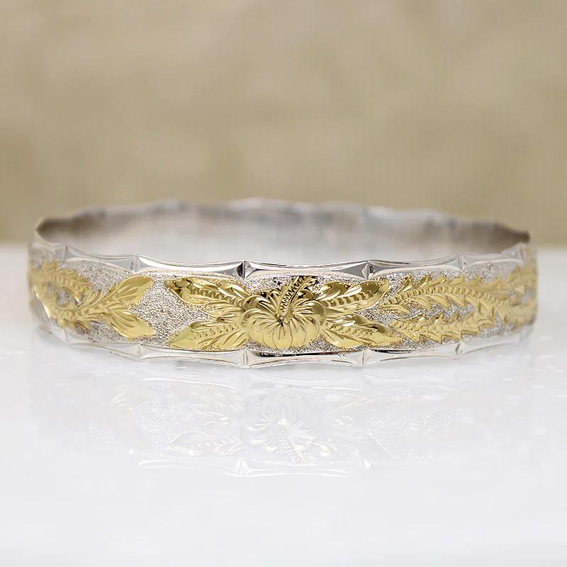 Engraved Gold & Silver Anthurium Blossom .58" Bangle