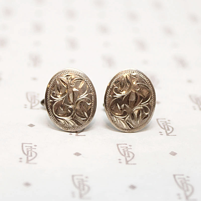 Vintage sterling silver cufflinks with gorgeous engraving. These bullet back cufflinks have wonderful Western flair, a great gift for your favorite Cowboy or Cowgirl. Circa 1960.