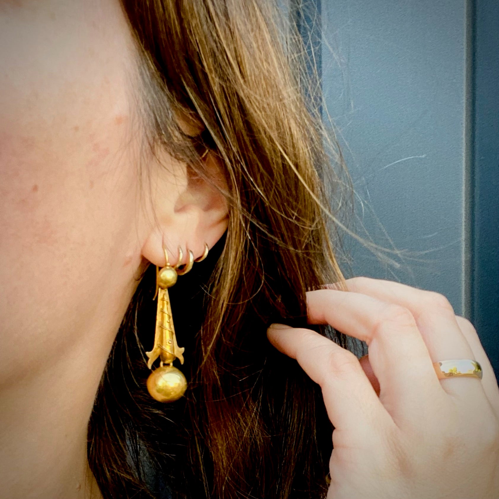 Etruscan Revival 15ct Gold Earrings with Lovely Movement