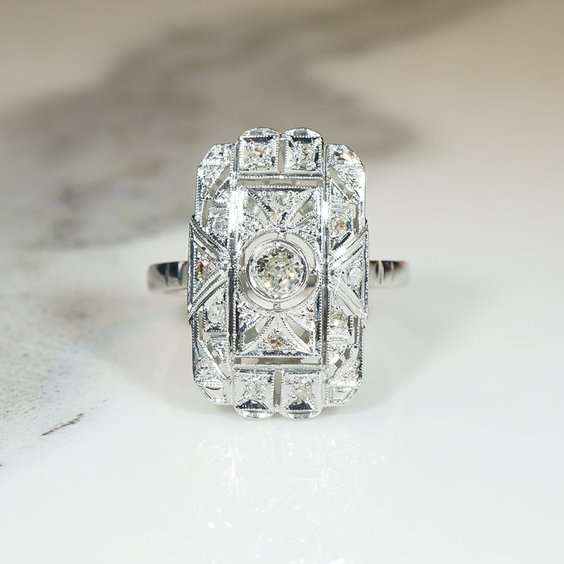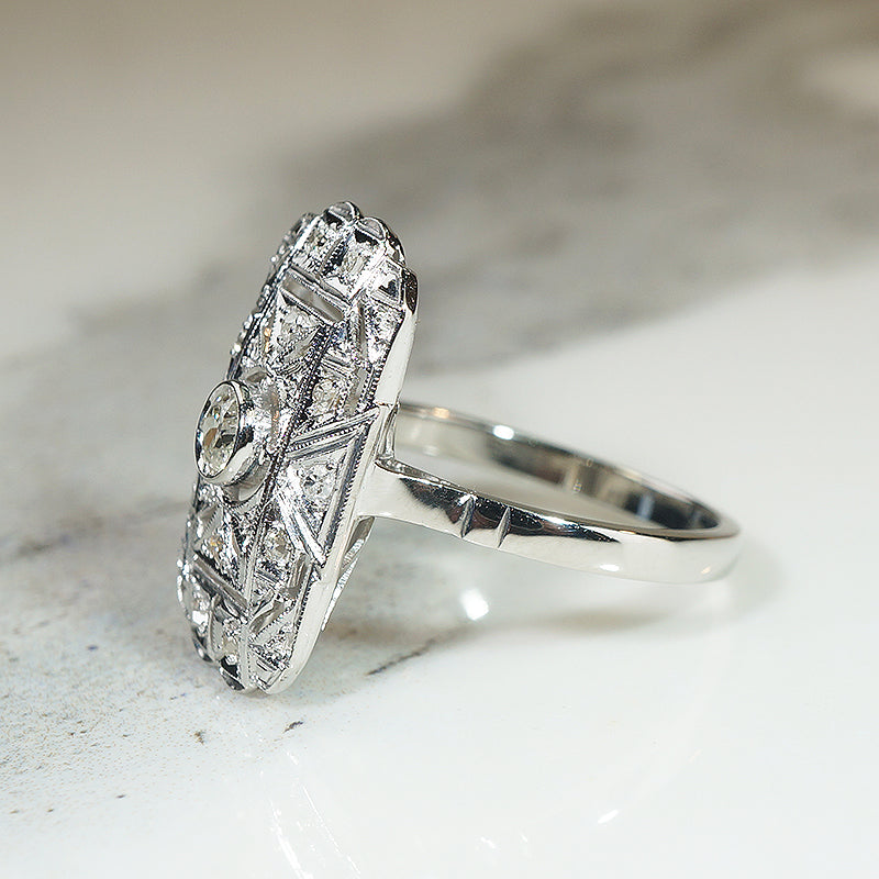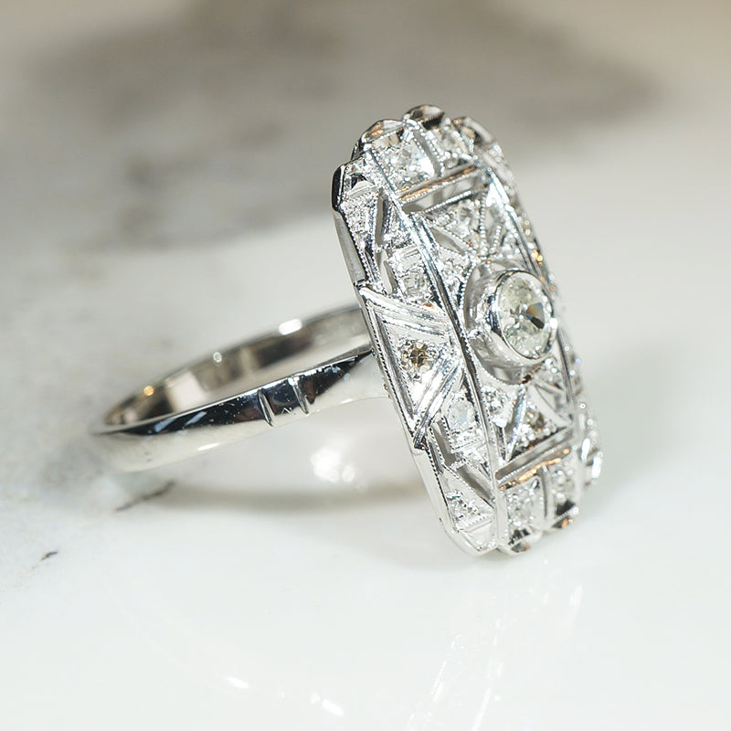 Exquisite Art Deco Platinum & Diamond Panel Ring