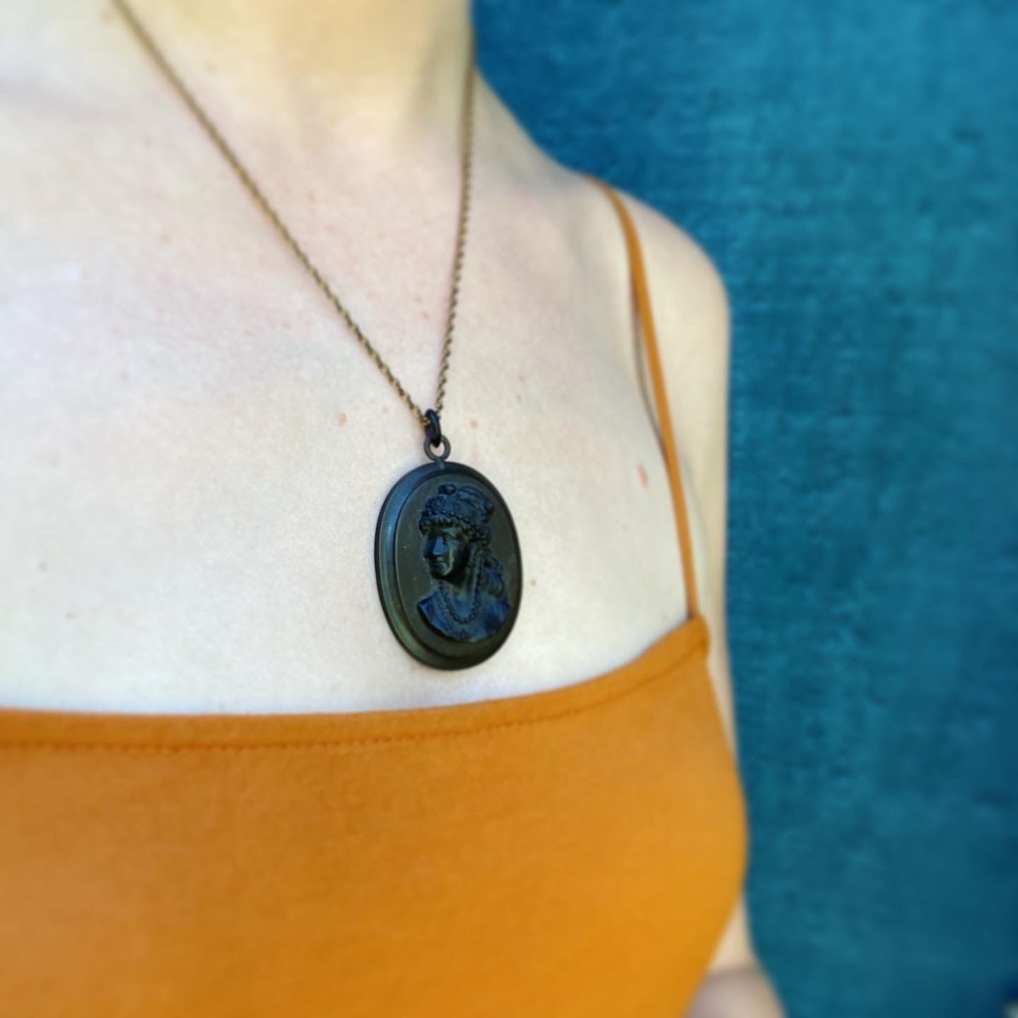Exquisite Jet Cameo on Gutta Percha Pendant