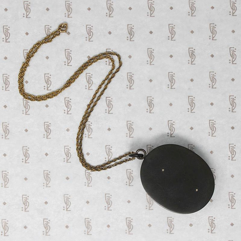 Details.....The pendant measures 1.48" wide and 2.11" long with bale. The chain is 19" long. In Very Good Antique condition. You should always expect some wear on vintage and antique pieces, we consider it part of the charm.