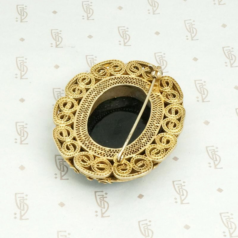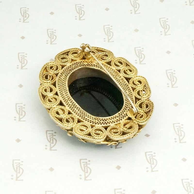 Exquisite Silver Gilt Filigree & Onyx Chinese Brooch