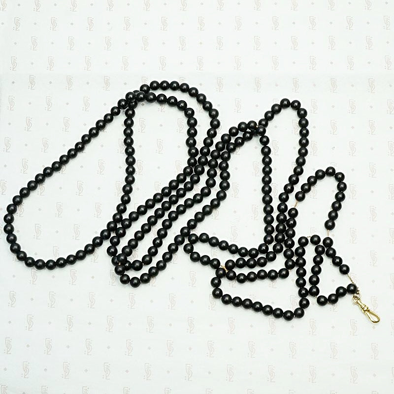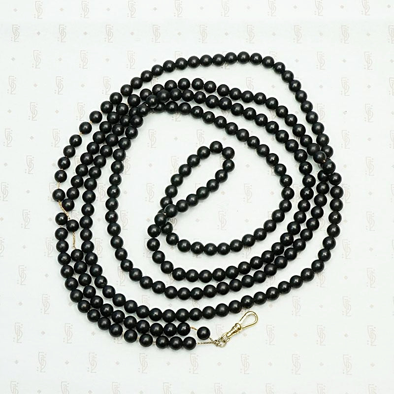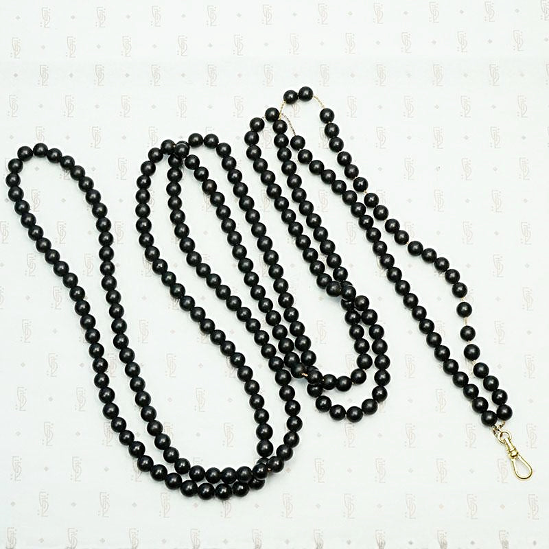 Extra Long Victorian Black Glass Bead Necklace with Dog Hook