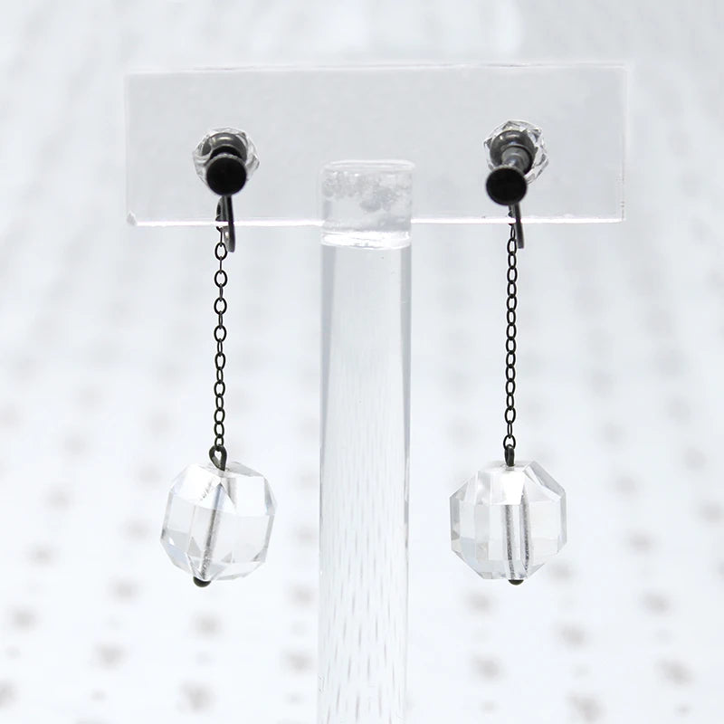 Art Deco glamour. These faceted crystal earrings date from the 1920s. The crystals swing gracefully from sterling silver chain. The sterling silver earring tops are set with smaller crystals. These earrings are screw backs. Screw back earrings were the fashion of the time, clip or screw on earrings were a strictly 20th Century trend. The screws have a fascinating mechanical construction that allows you to adjust the pressure on your ear lobe. These beauties will shine like stars while you are dancing The Charlston.