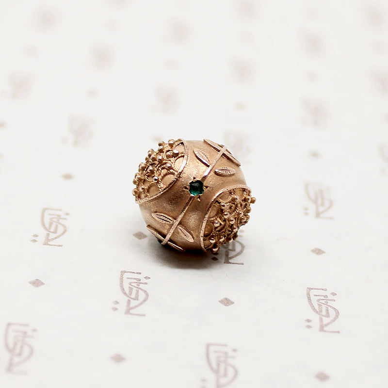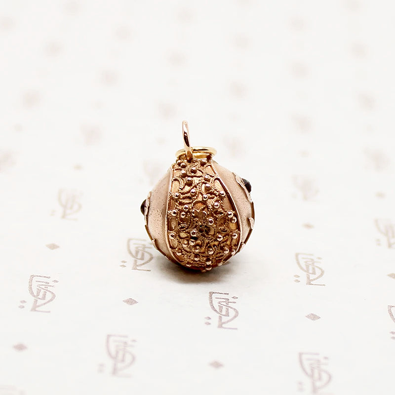 Filigreed Etruscan Revival Ball Fob with Garnets