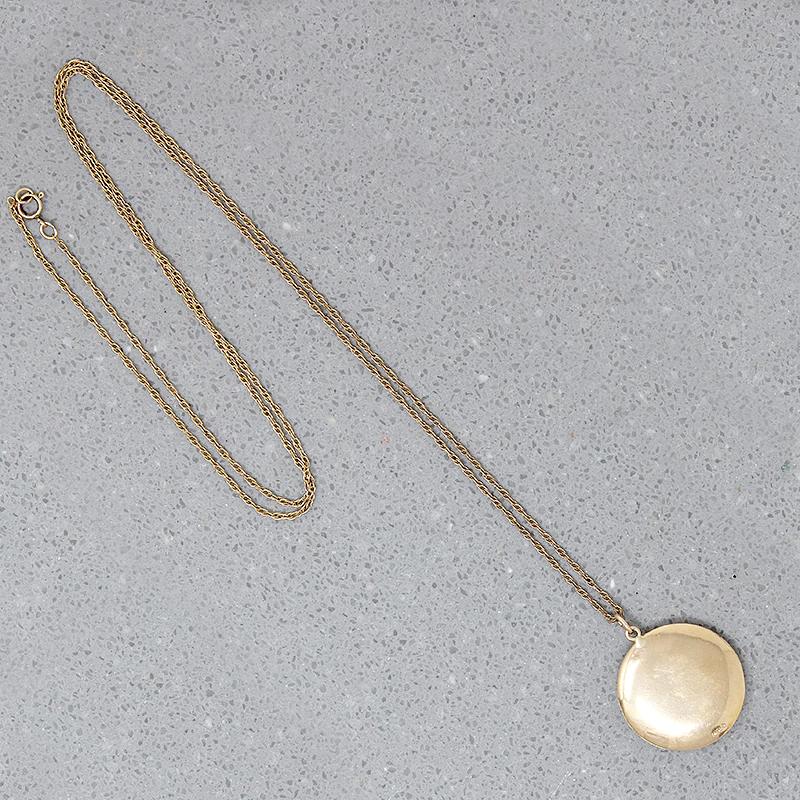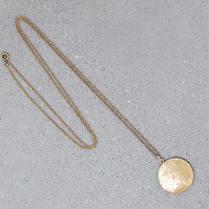 Detail.....The chain is 26" long. The locket measures 0.94" in diameter, 1.15" with bale. In Very Good Antique Condition. You should always expect some wear on vintage and antique pieces; we consider it part of the charm.