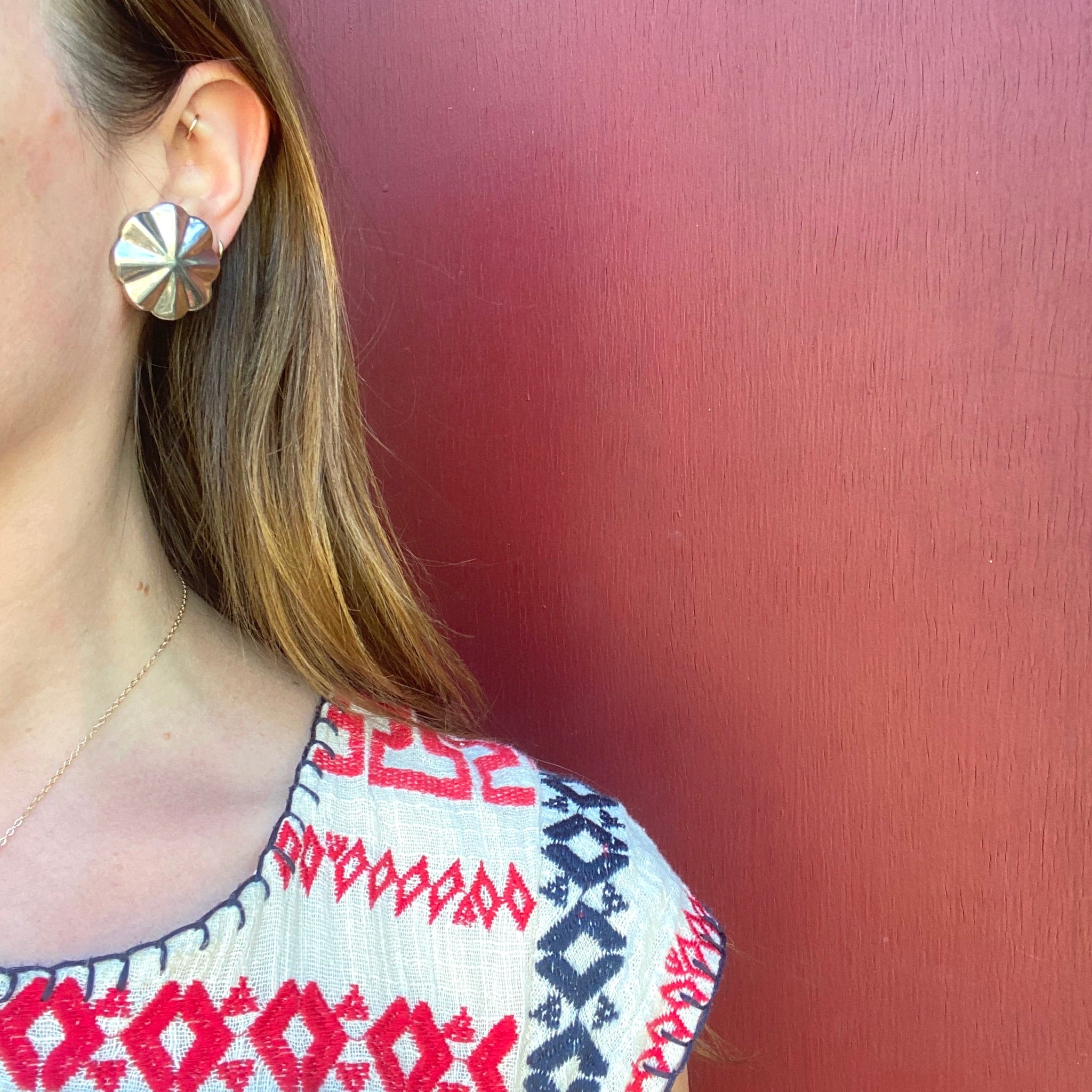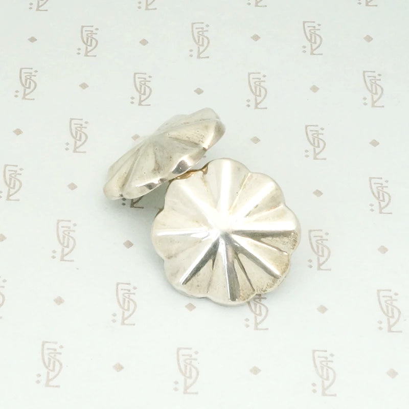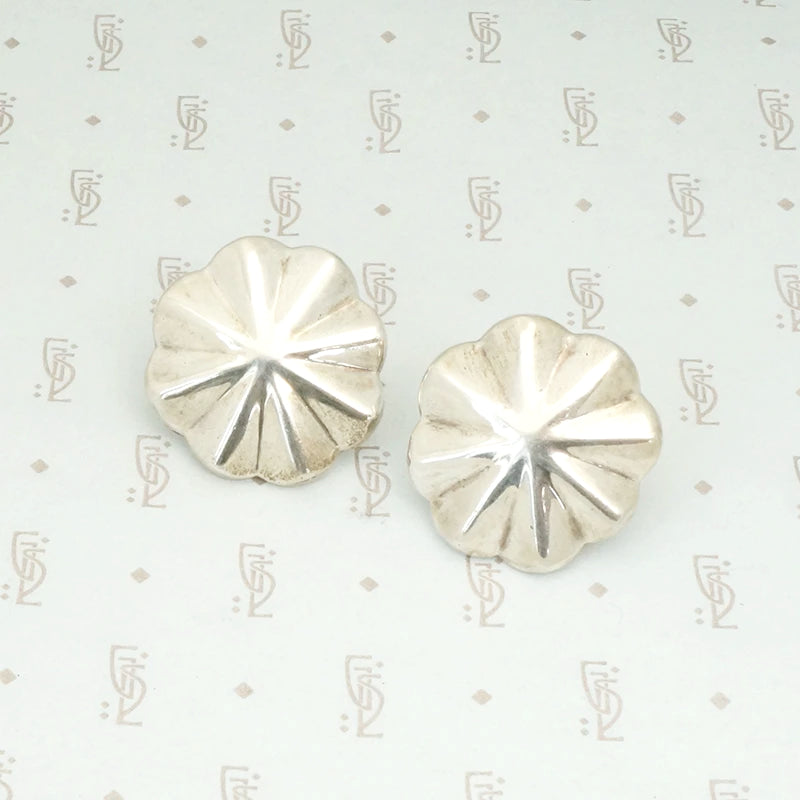 Vintage sterling silver earrings resembling large stylized flowers. They are three-dimensional, with a pleasing fluted shape. These are post earrings. Marked 925. Circa 1980.