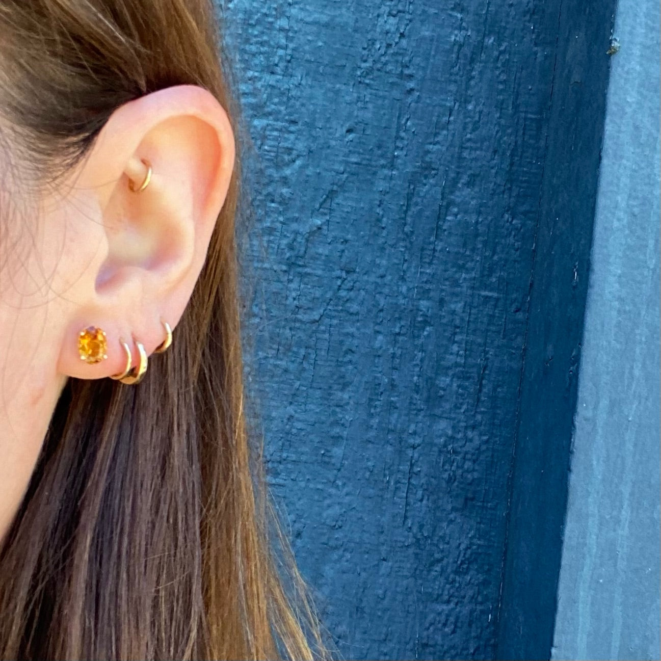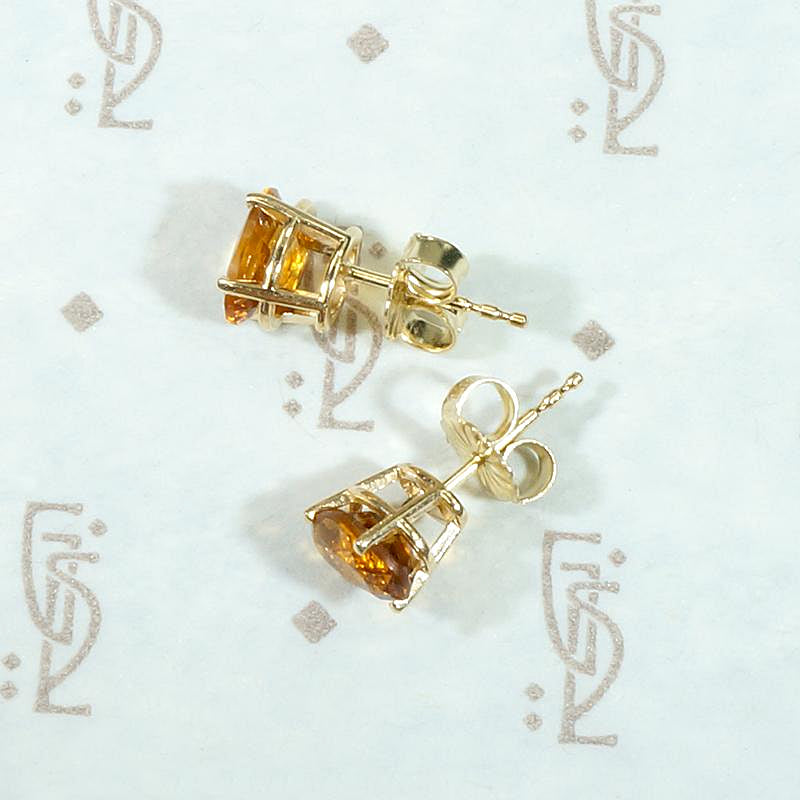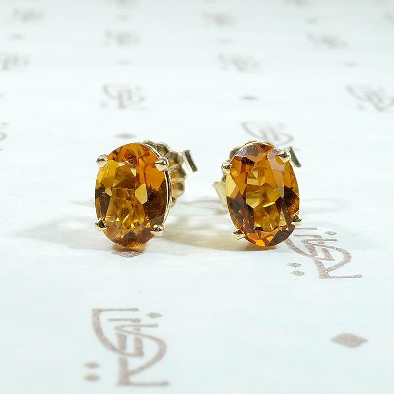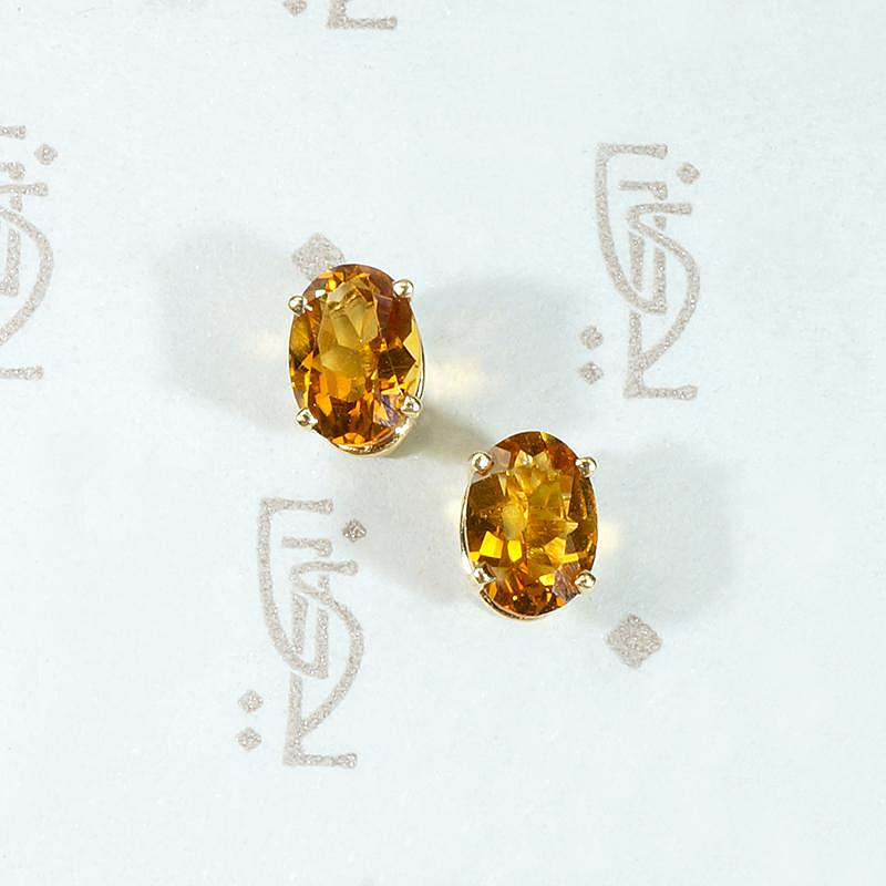 These vintage stud earrings feature warm and wonderful citrine gemstones, like frozen honey. The oval gems sit in 14k yellow gold four-prong basket settings, with friction posts and tension backs. These studs are secure and easy to wear, great for everyday. Citrine is November's birthstone and is the gem associated with the zodiac sign Leo.