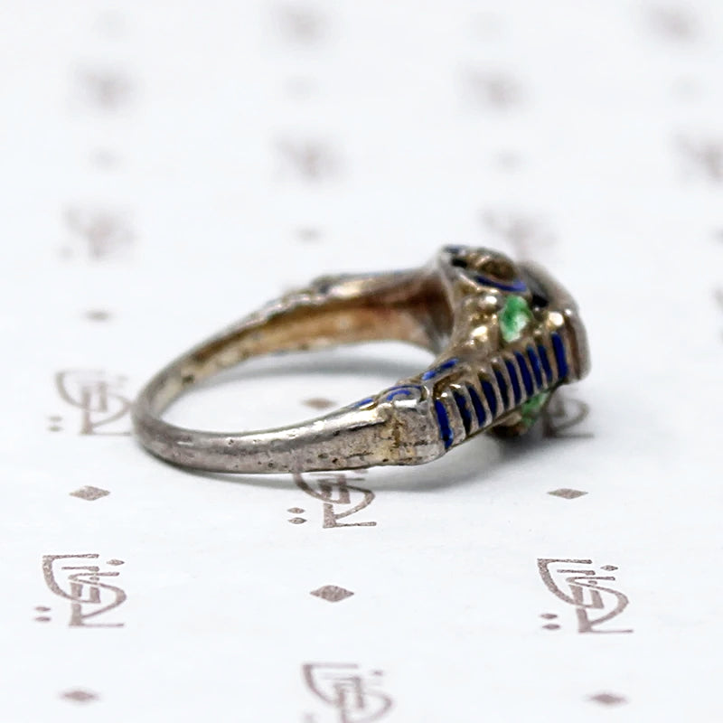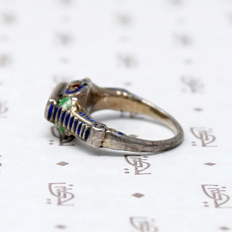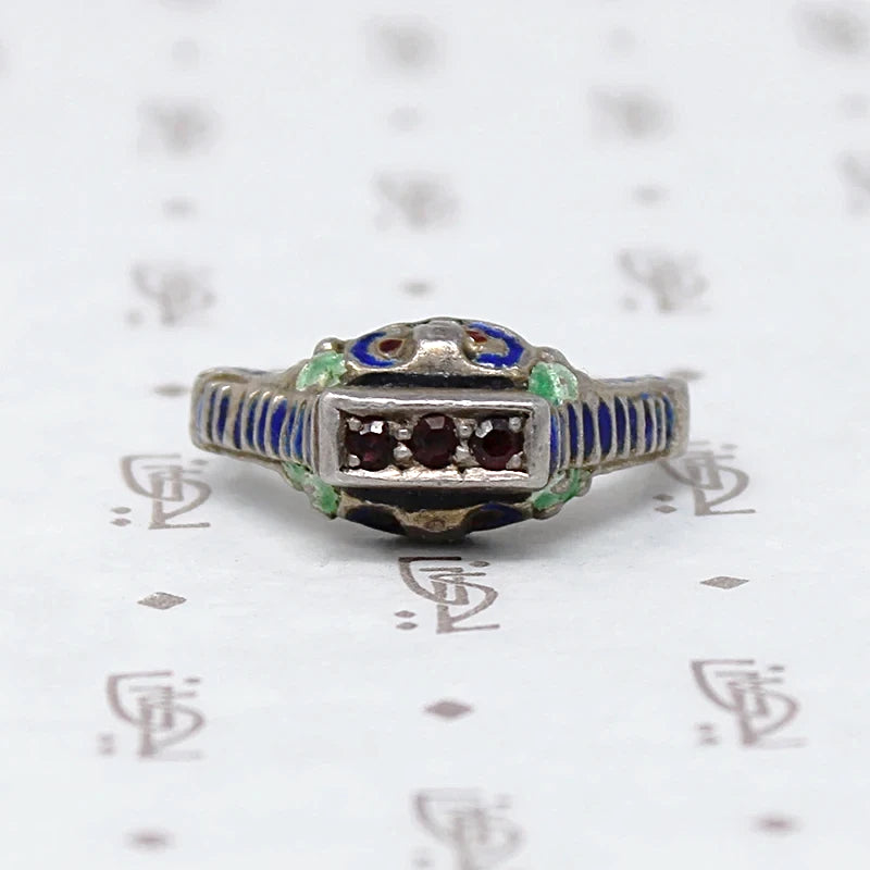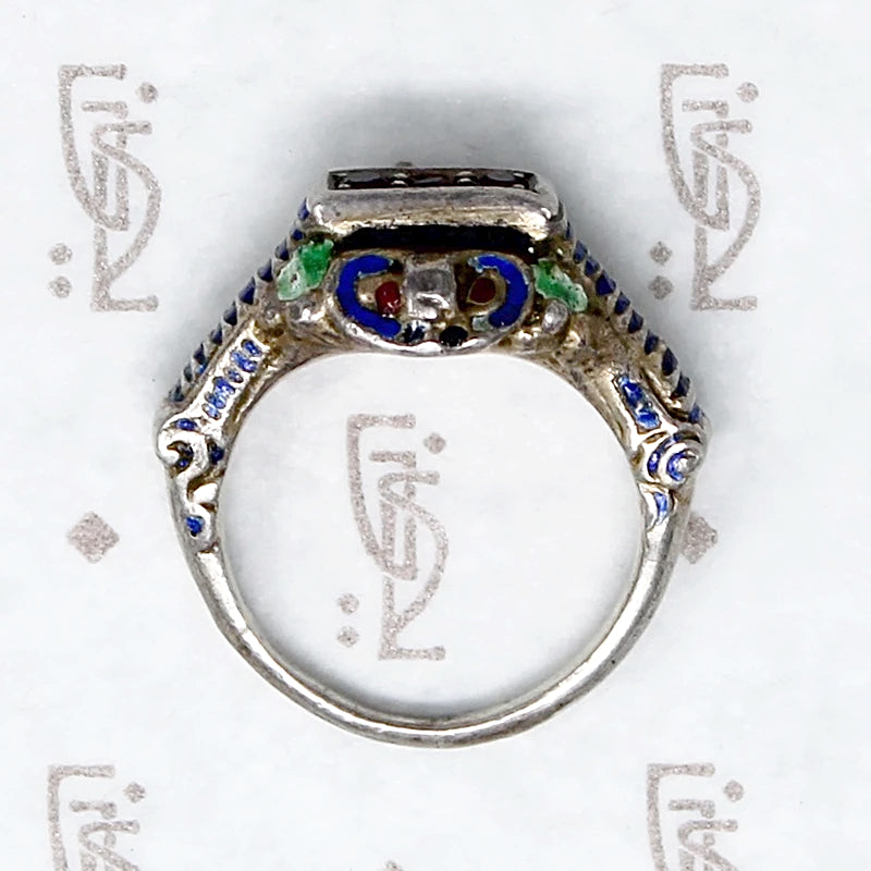 Garnet & Enamel Austro-Hungarian Silver Ring
