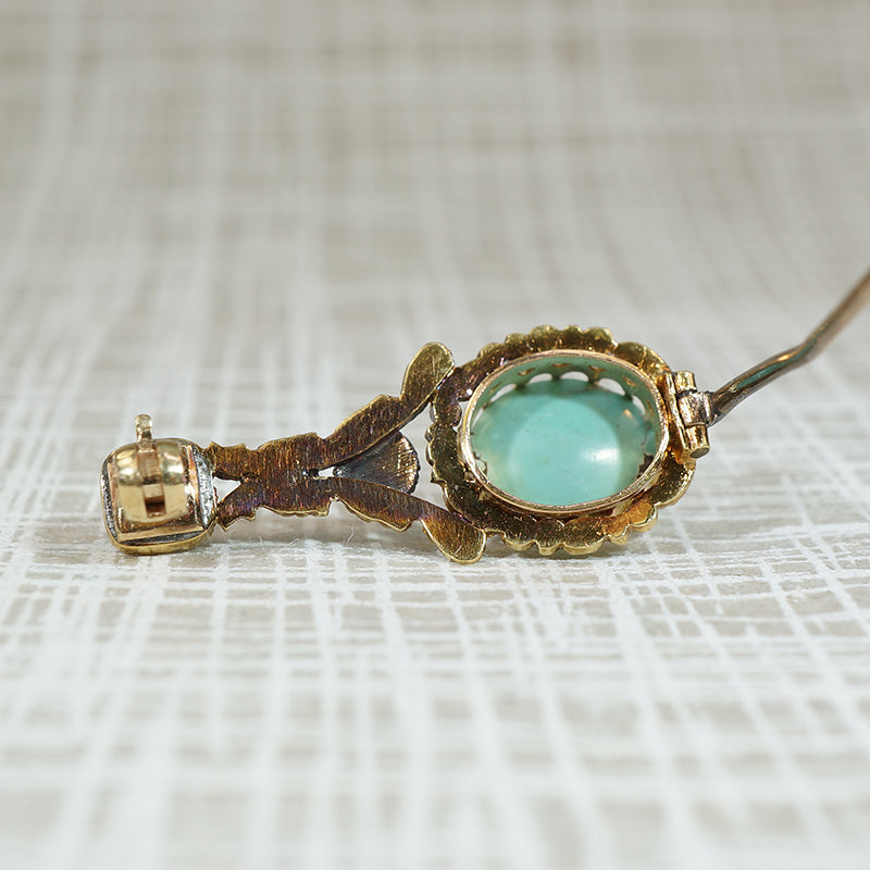 Details.....The brooch measures 1.18" long and .47" wide at its widest point. This beauty is in excellent condition, the original C clasp has been changed to a safety clasp sometime in the 20th c, the pin stem is the original extra long of the period. You should always expect some wear on vintage and antique items