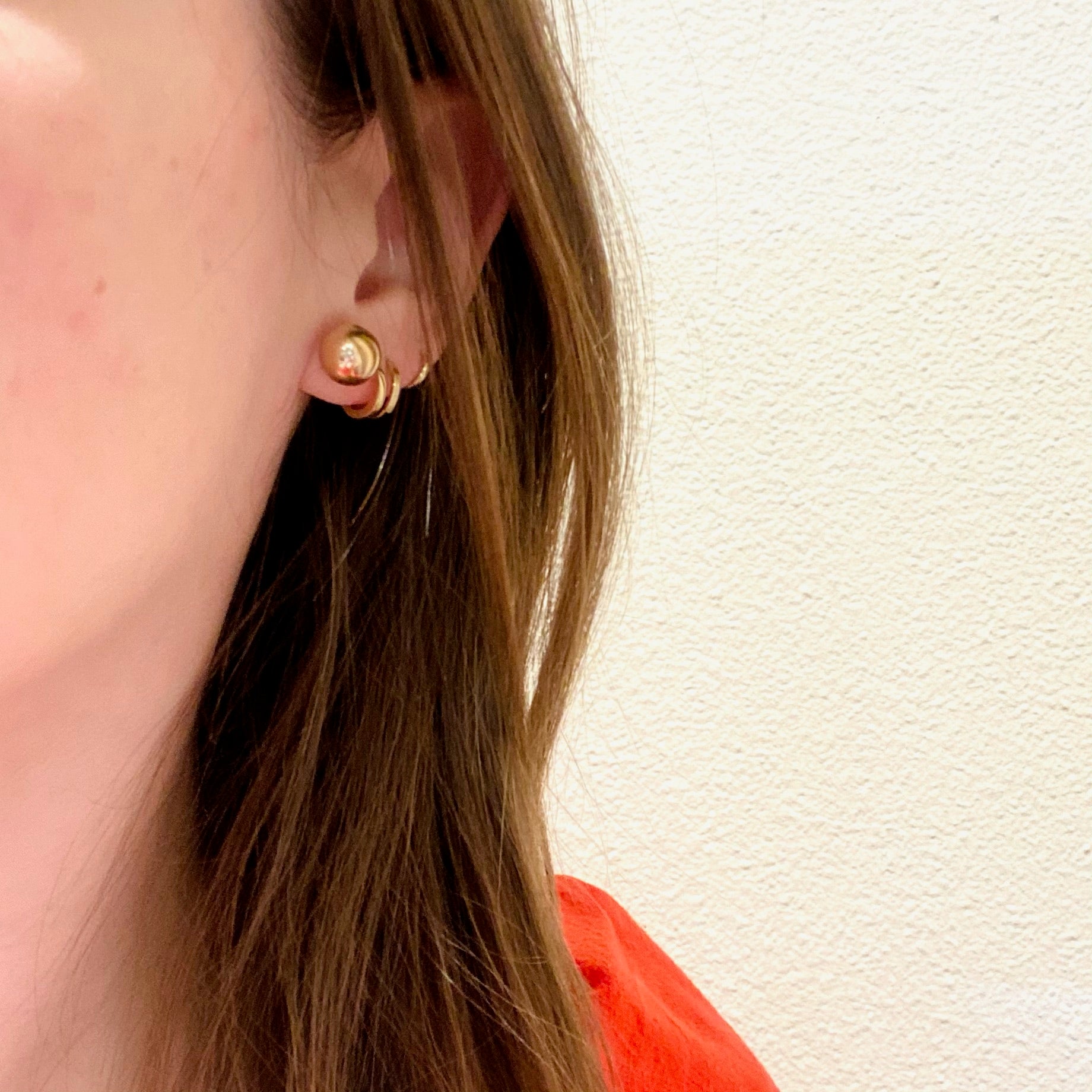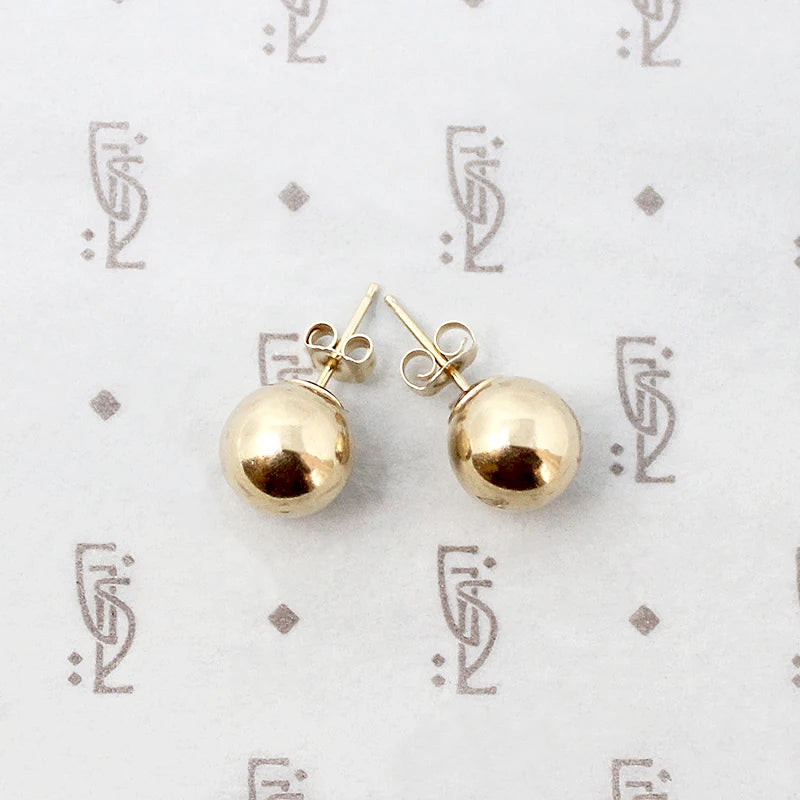 These vintage gold ball studs make an elegant statement. The glowing 14k yellow gold looks luxurious and is perfect for daily wear.