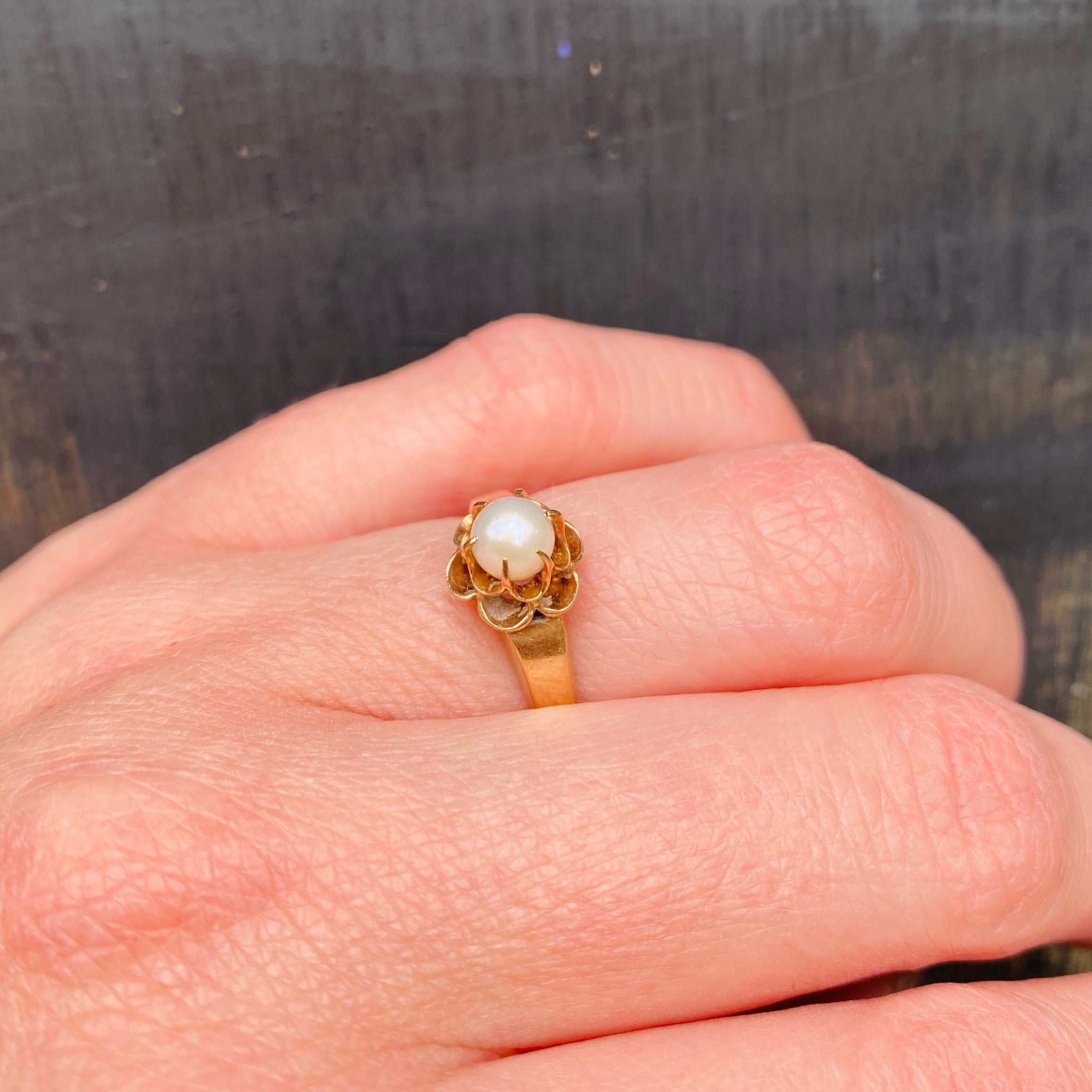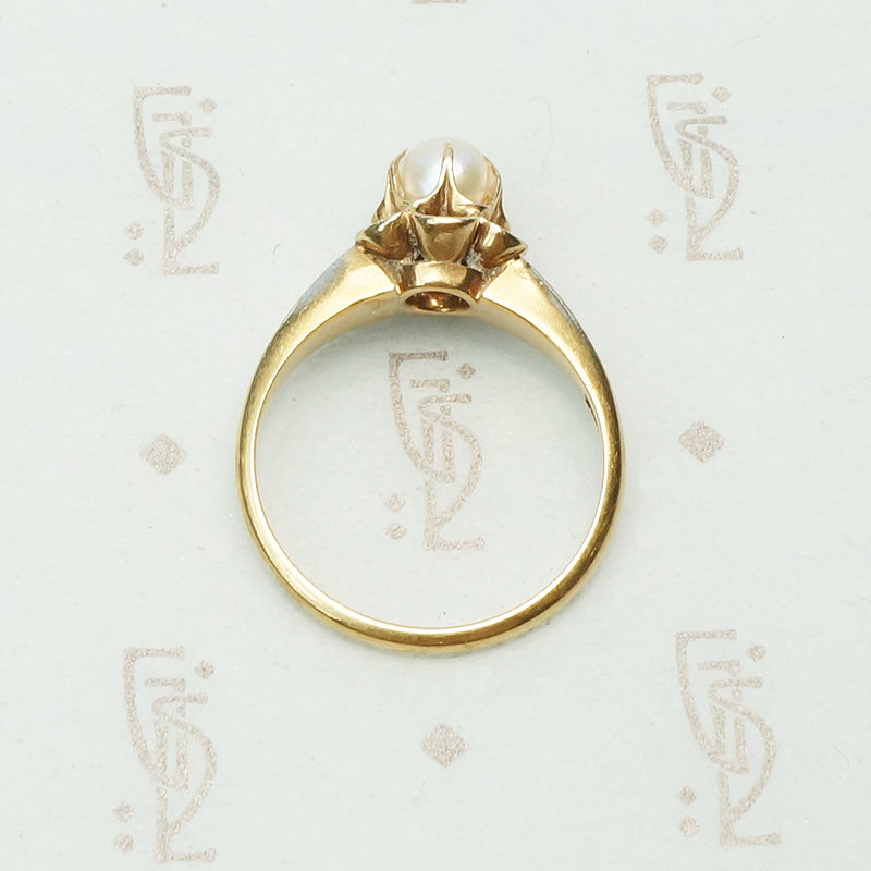 Gold Tulip Set Pearl Ring Circa 1900