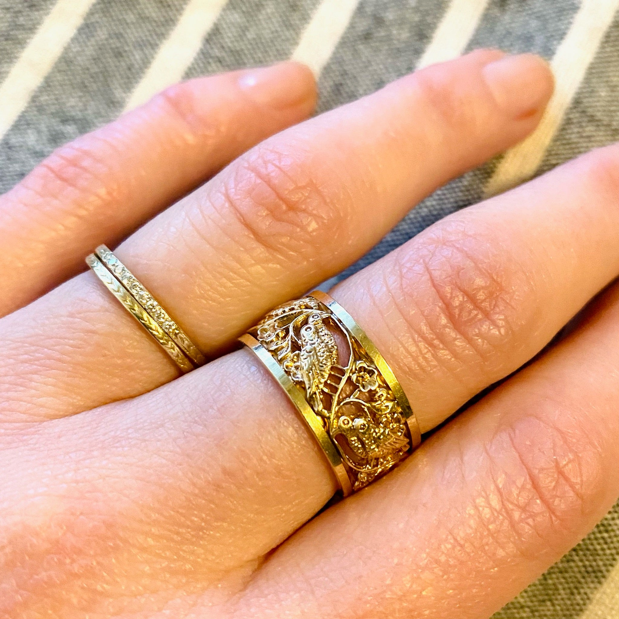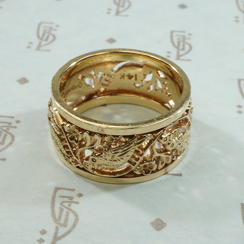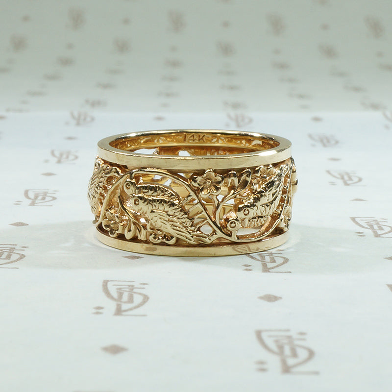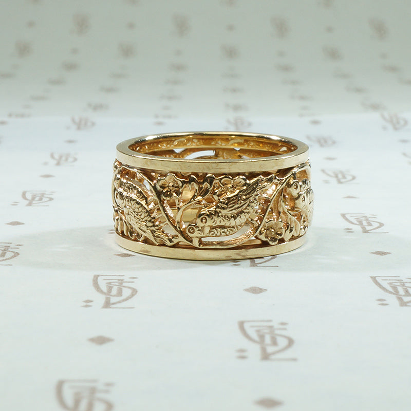 Gold Vintage Love Bird Wedding Band