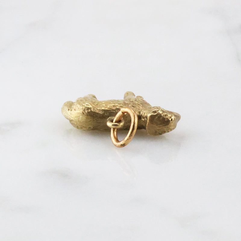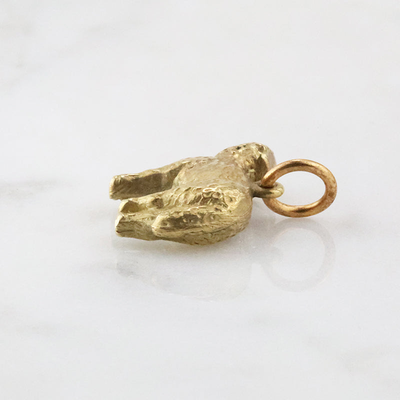 Ok, maybe this charm is not quite as epic as the Golden Fleece, but she is still just a little golden lamb. Crafted in tender detail of 14k yellow gold. Fantastic texturing creates a wooly look, and sweet facial features give the piece an emotional depth that is incredibly sweet. Circa 1940.