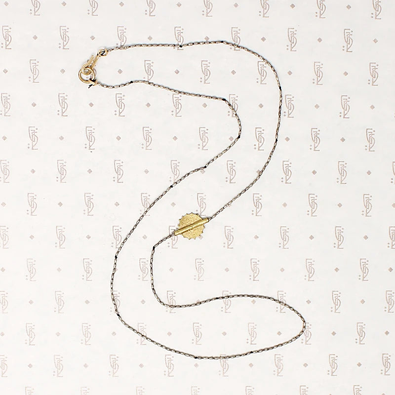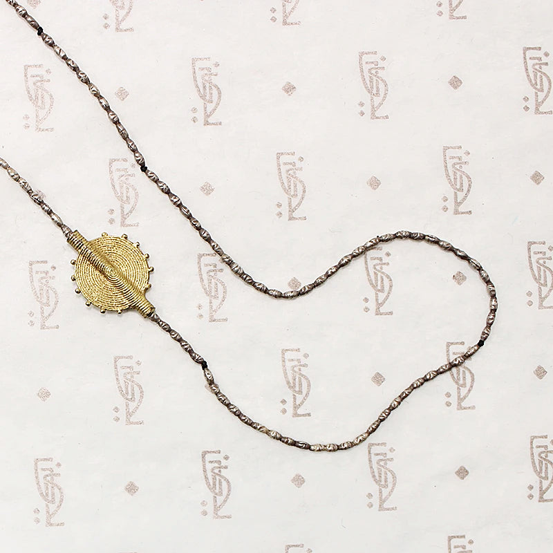Golden Sun & Tiny Silver Bead Knotted Necklace