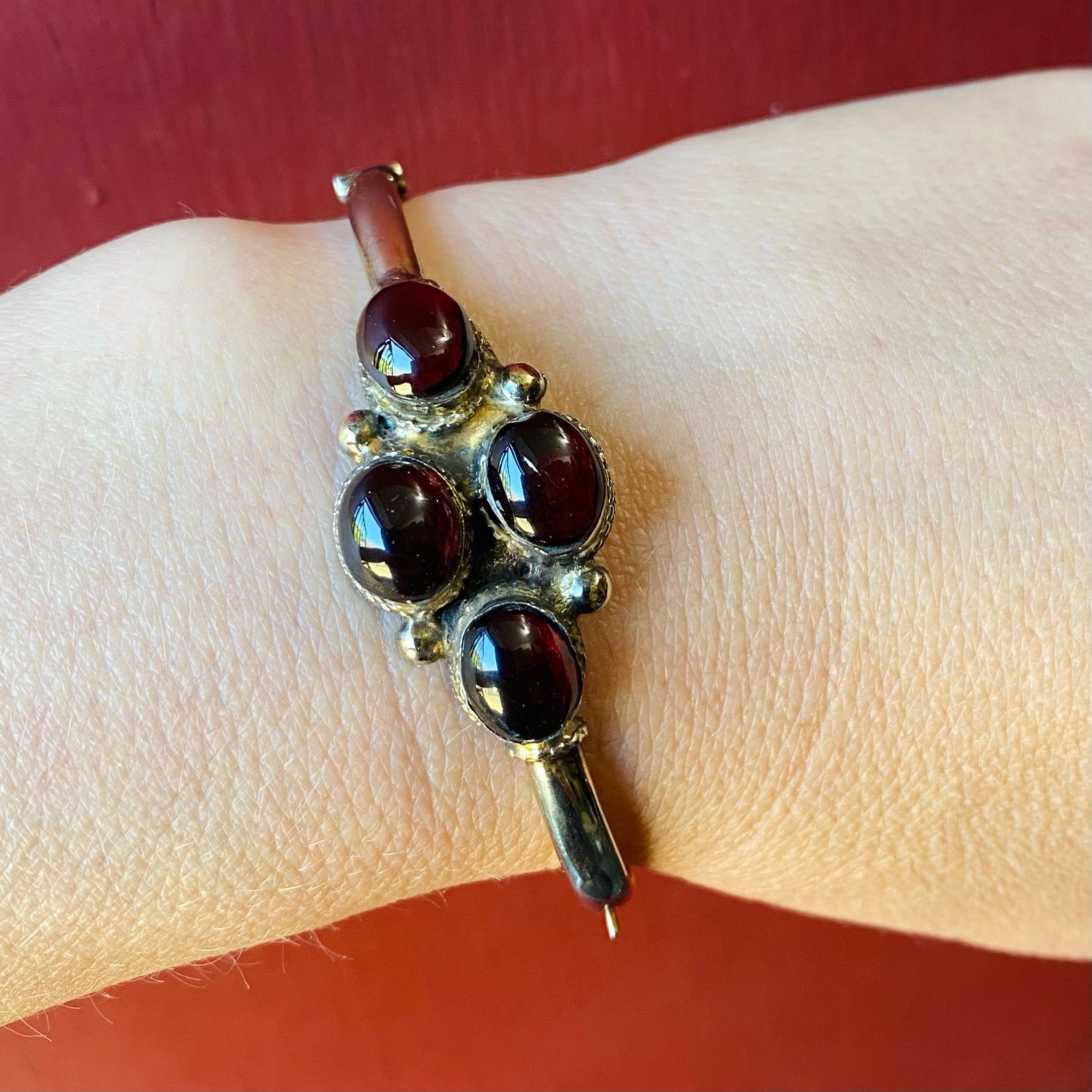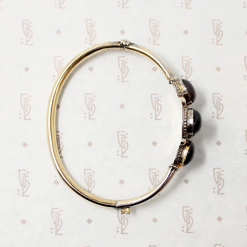 Gorgeous Garnet Silver Gilt Bangle Bracelet