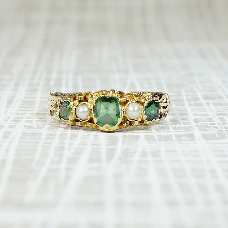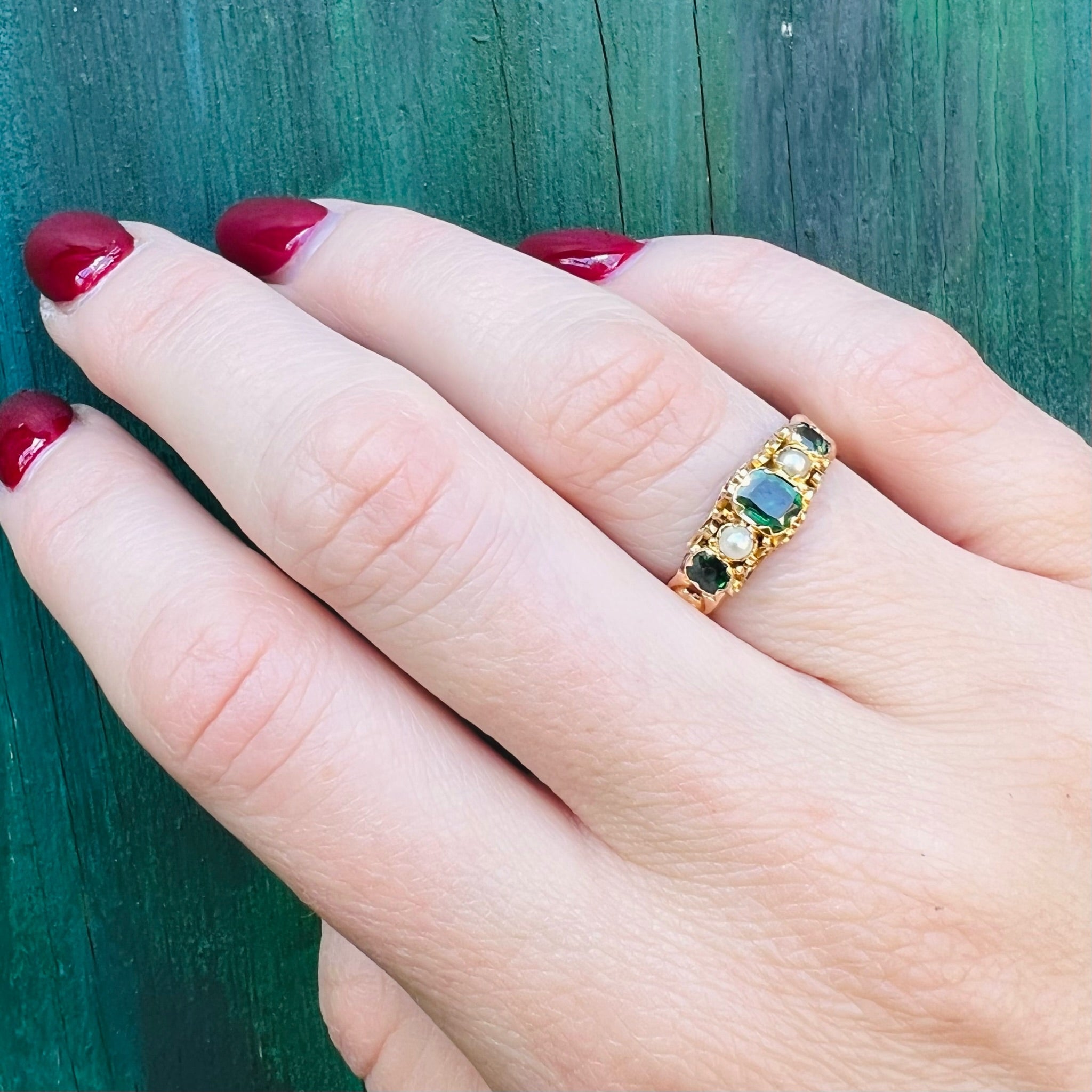 Gorgeous Georgian Emerald Doublet & Pearl Band
