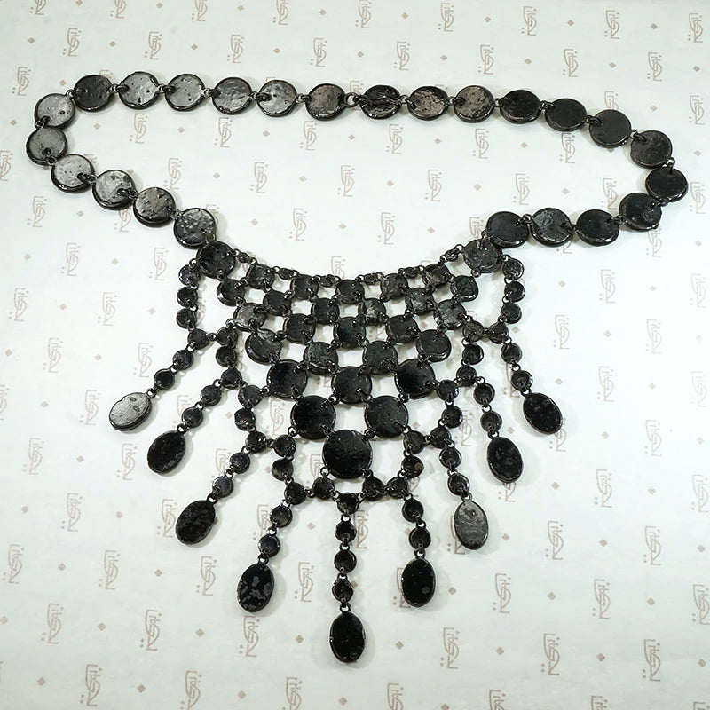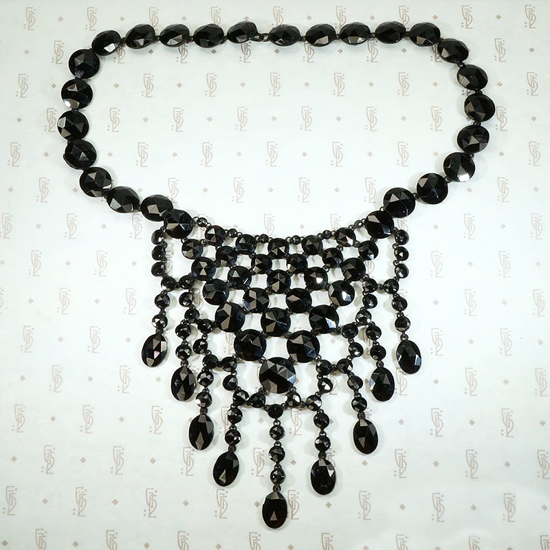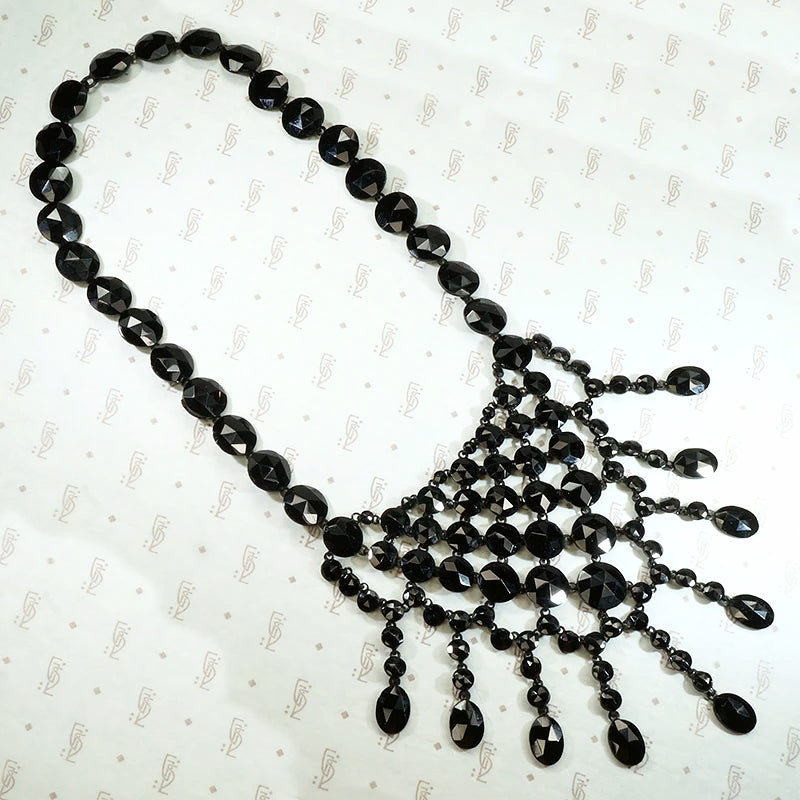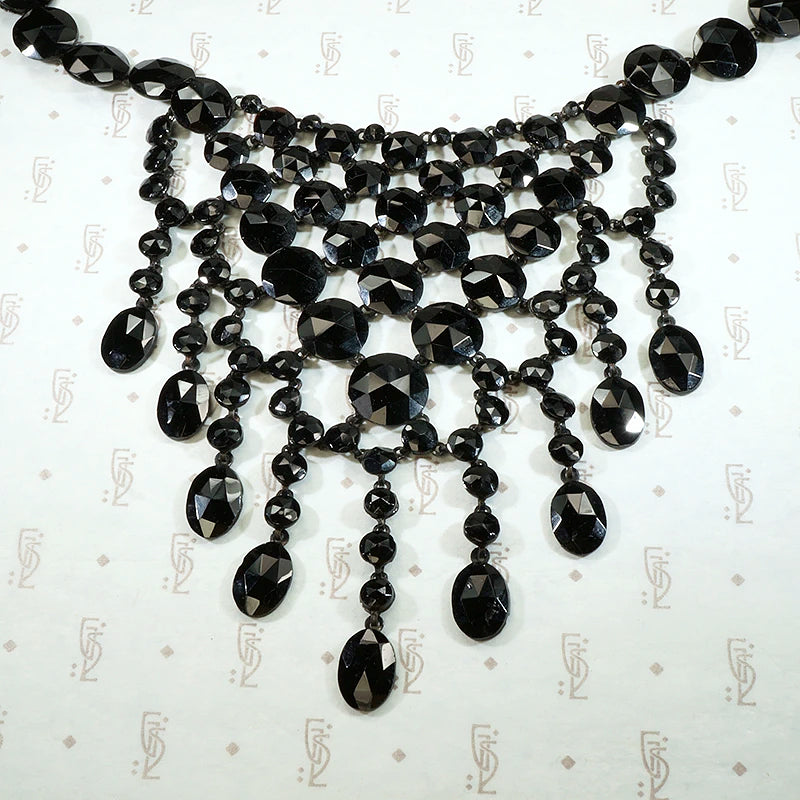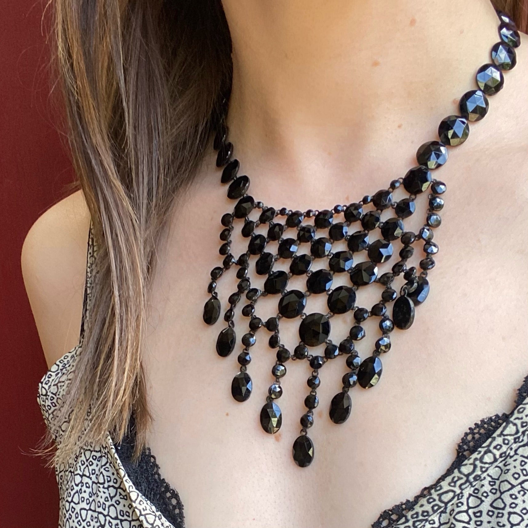 Gothic Elegance Victorian Black Glass Bib Necklace