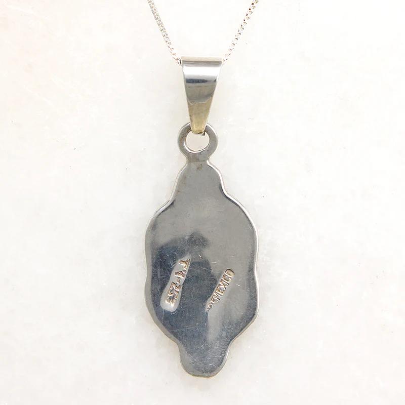 Details.....The chain is 16" long, and the pendant measures .73" by 1.65", 2.1" with bale. In New Old Stock Condition. You should always expect some wear on your vintage and antique jewels; we consider it part of the charm.