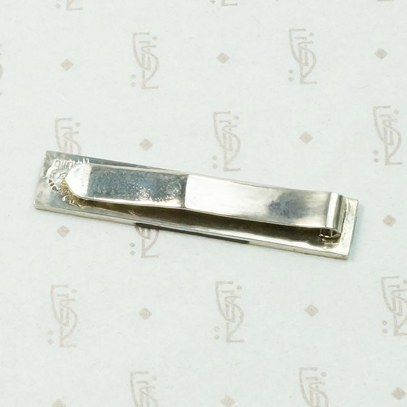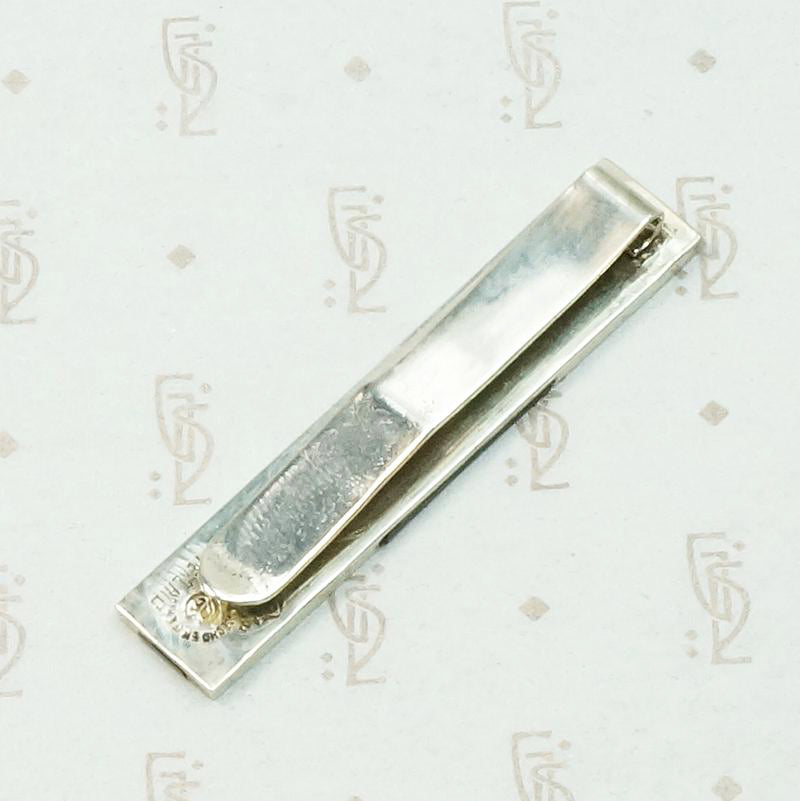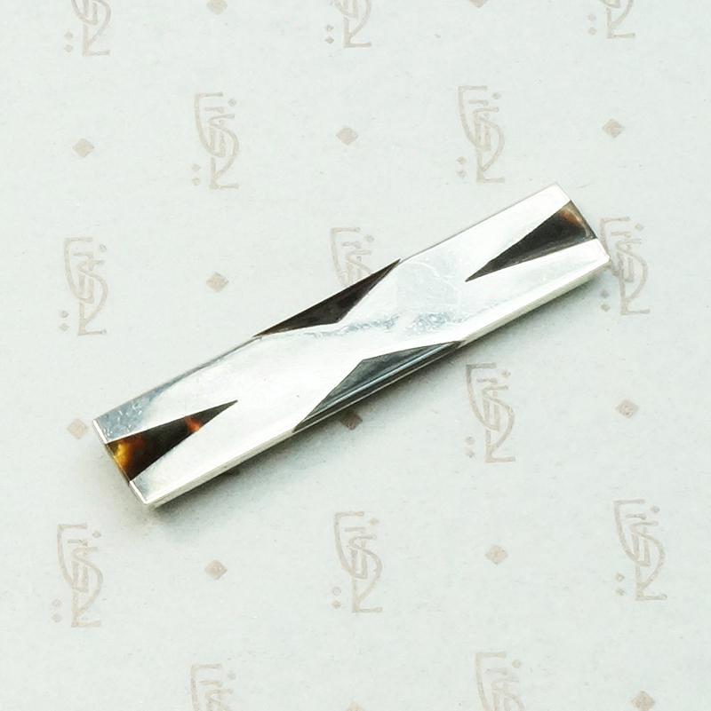 A very handsome Retro tie bar with triangles of tortoise shell inlaid in sterling silver. This wonderful piece is marked "Taxco," "Sterling" and "Hecho en México." A perfect Father's Day present or gift for the groom.