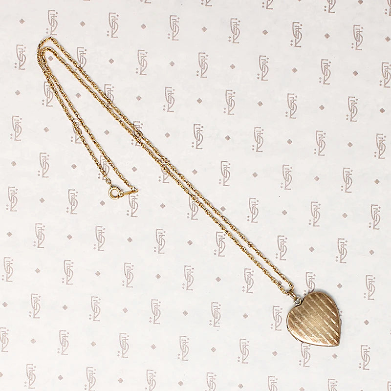 Heart Locket Engraved with Crowned Heart & Pinstripes