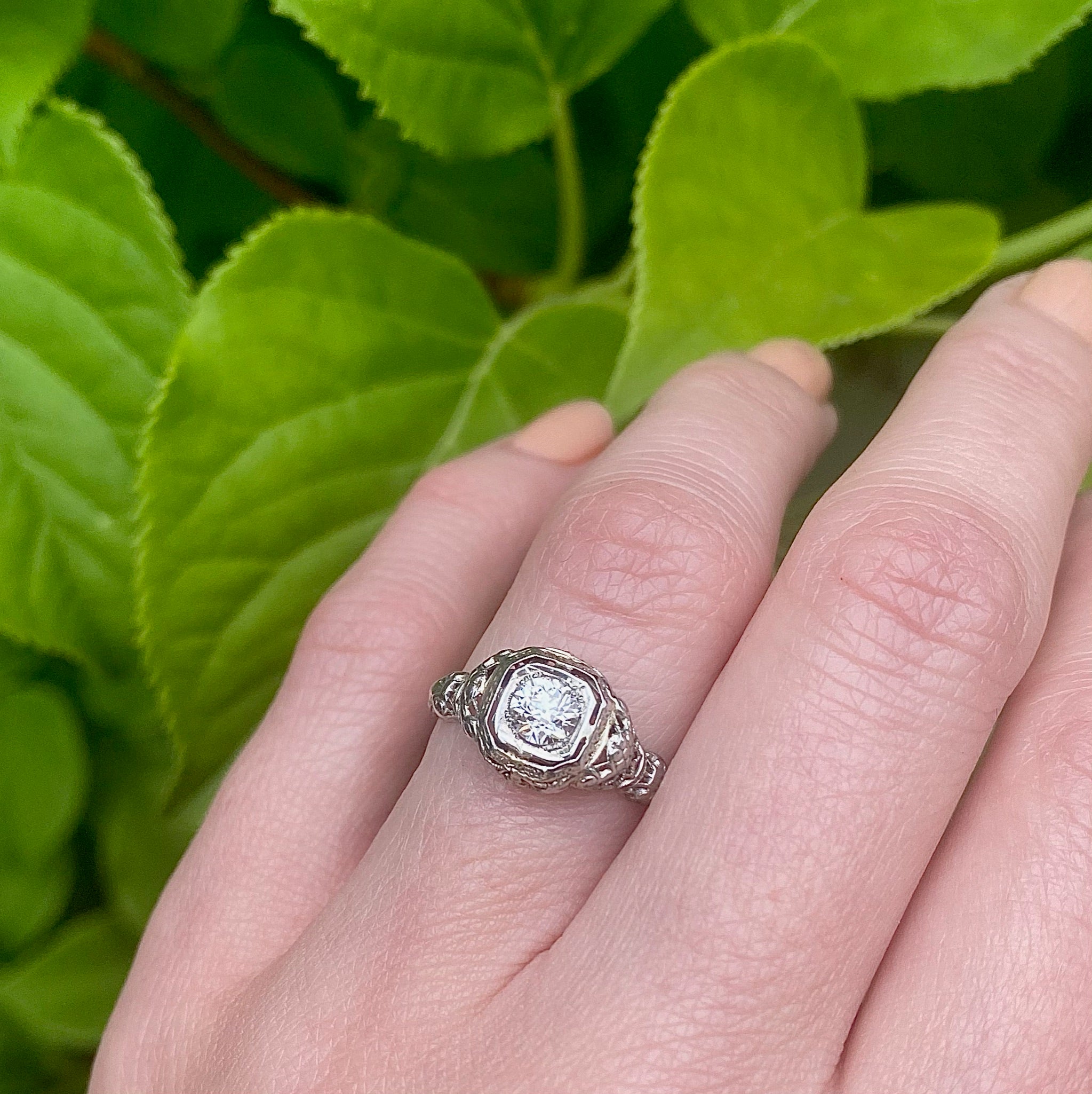 Highly Detailed Filigree Solitaire Diamond Engagement Ring