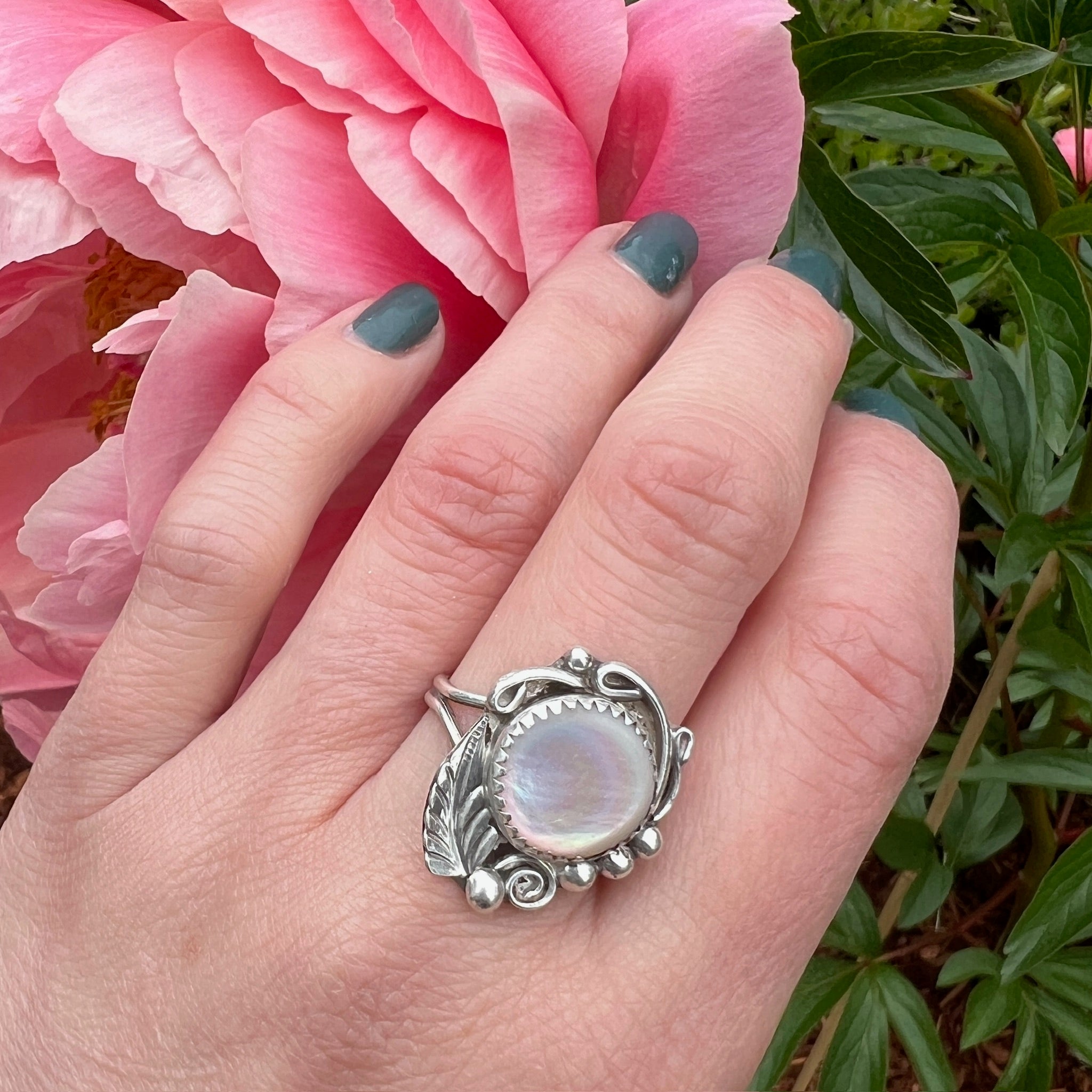 Iridescent Mother of Pearl in Sterling Silver Ring