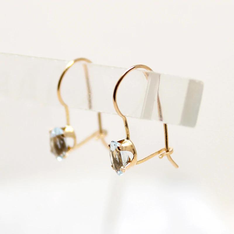 Details.....The earrings measure 15.2mm long. The aquamarines measure 4mm by 6mm. In Very Good Vintage Condition. You should always expect some wear on vintage and antique jewels; we consider it part of the charm.