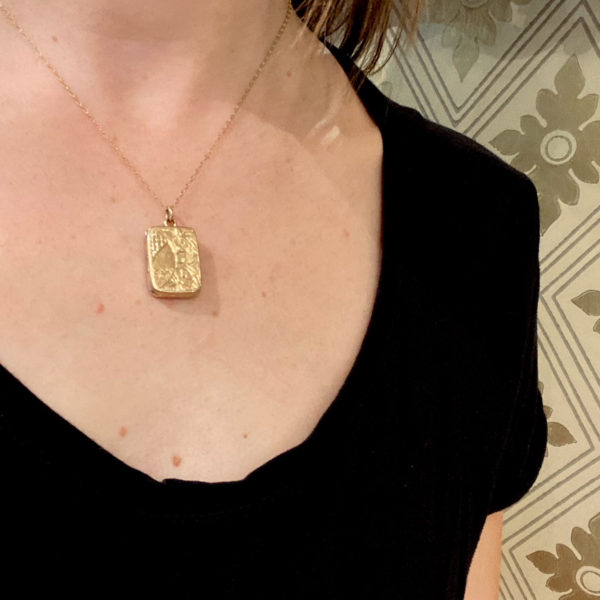 Details.....The locket measures 0.64" by 0.86". The chain is 17" long. In Very Good Antique Condition. You should always expect some wear on Vintage and Antique jewels, we consider it part of the charm.