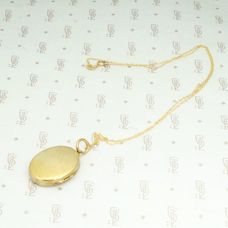 Details.....The locket measures 1.33" by 0.80". The gold filled chain is 18" long. In Very Good Antique condition. You should always expect some wear on vintage and antique jewels, we consider it part of the charm.