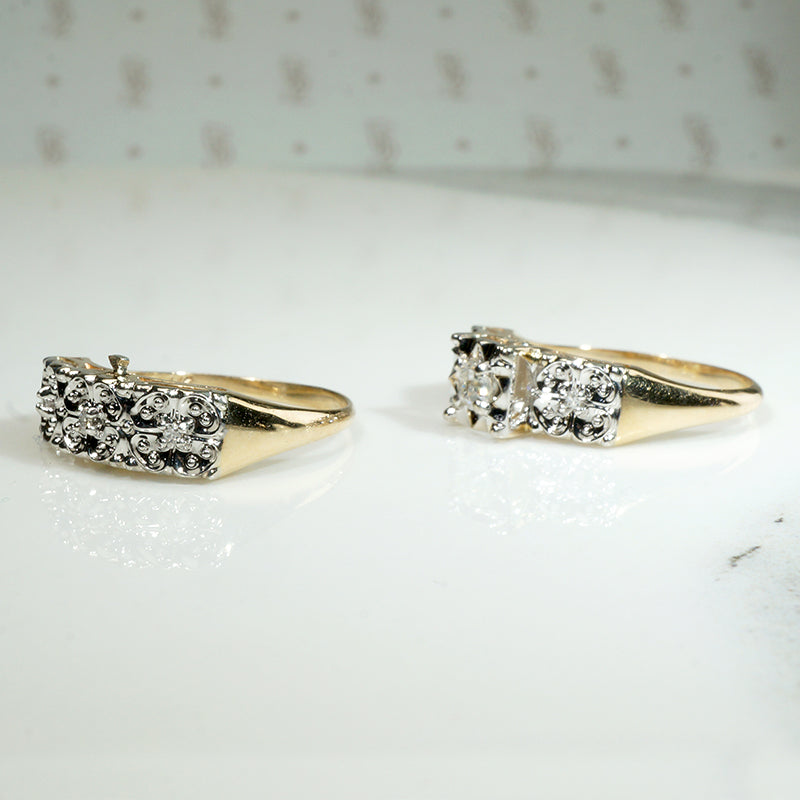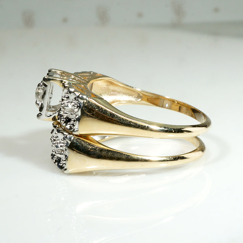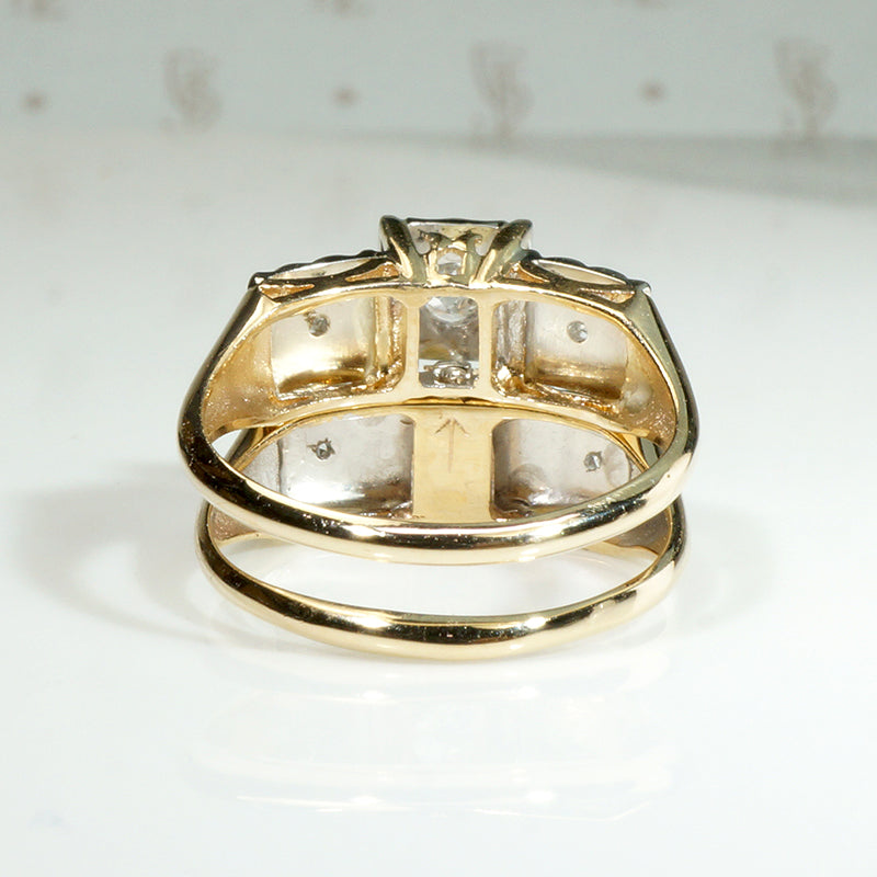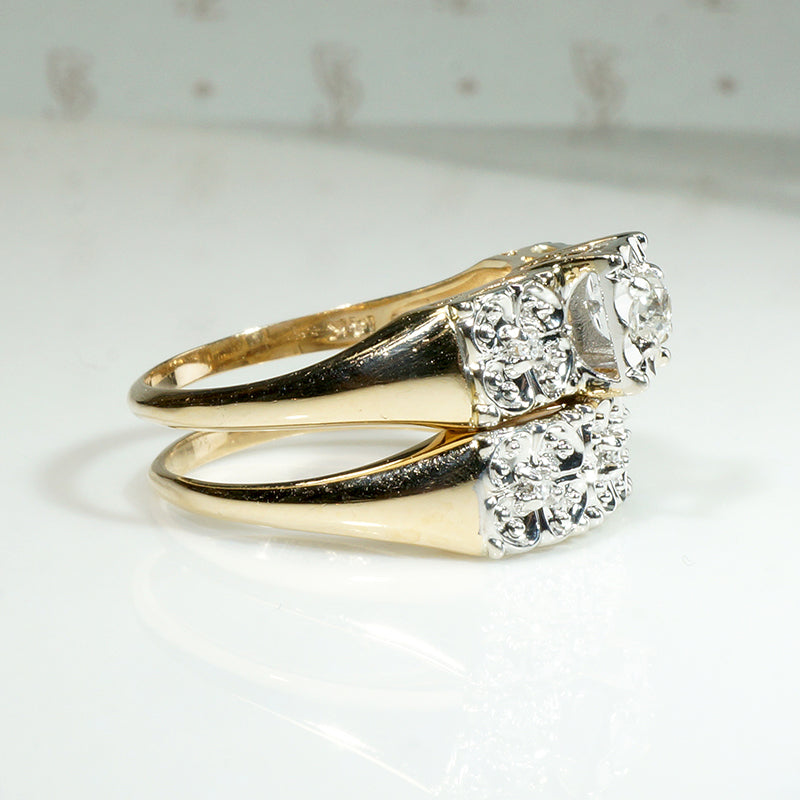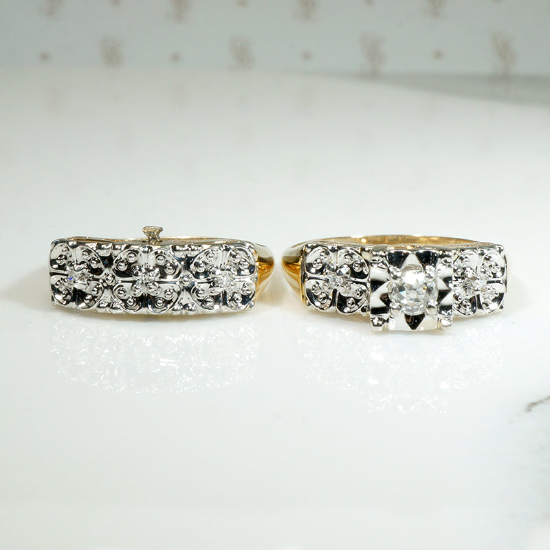 Lucky Clover NOS Old Mine Cut Diamond Two-Tone Gold Wedding Set