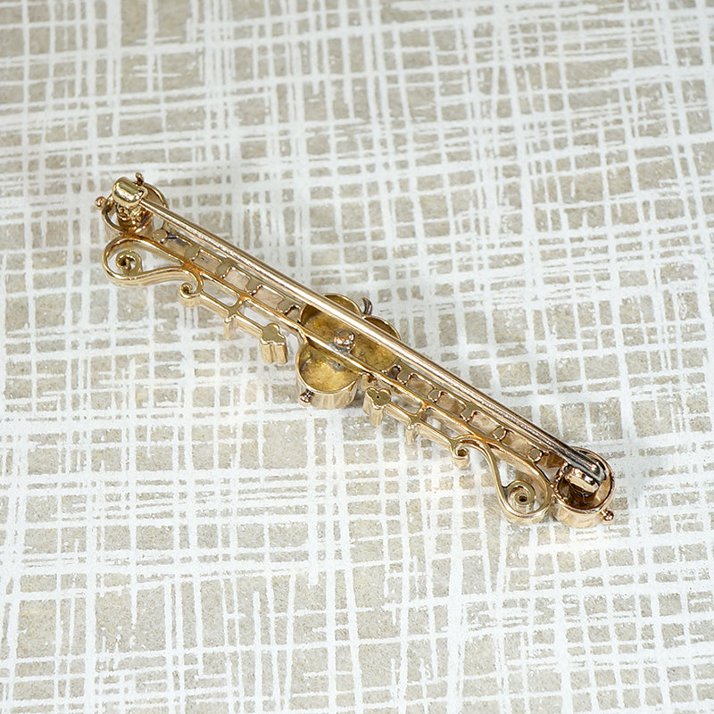 Details..... The brooch measures 2.12" by 0.46". In Very Good Antique Condition. You should always expect some wear on vintage and antique jewels; we consider it part of the charm.