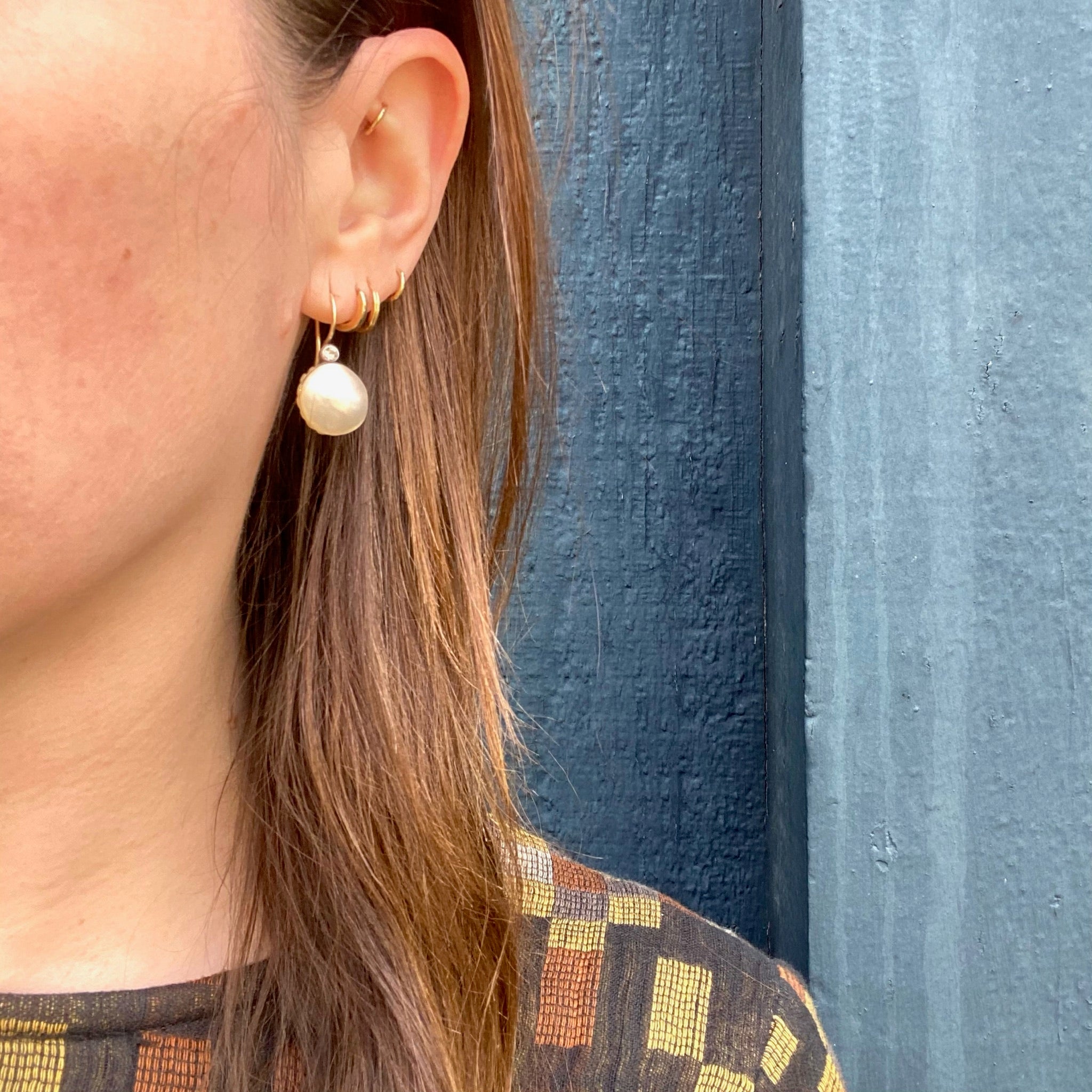 Details.....The earrings measure 1.09" long, the pearls are 13.5mm in diameter and the diamonds measure 3.3mm in diameter. In Excellent Vintage Condition. You should always expect some wear on vintage and antique jewels, we consider it part of the charm.
