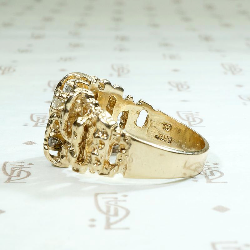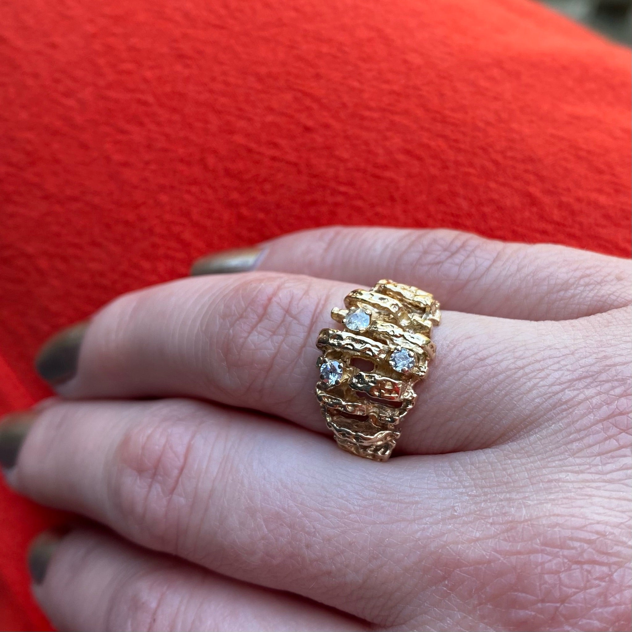 Luxurious Landscape Brutalist Gold & Diamond Ring
