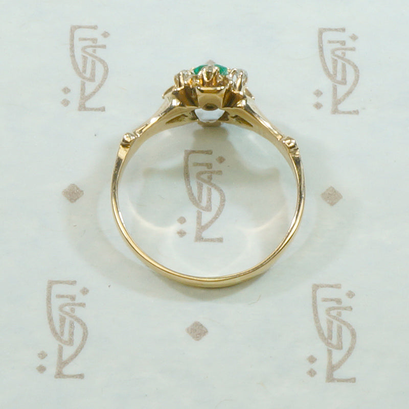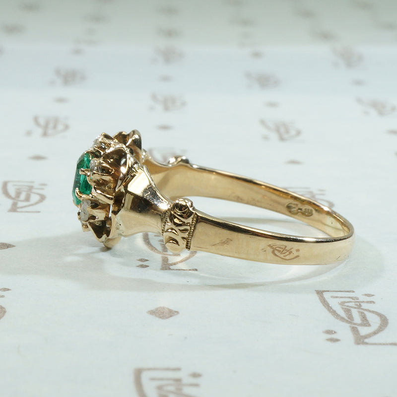 Mellow Old Gold Emerald and Rose Cut Diamond Ring