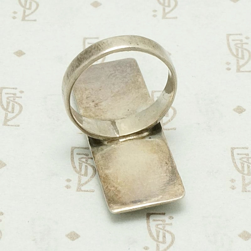 Details.....Currently a size 5.25, this ring may be sized for a fee. The top of the ring measures 1.42" by 0.46" and the band measures 3.2mm wide. In Very Good Vintage condition. You should expect some wear on all vintage and antique jewels, we consider it part of its charm.